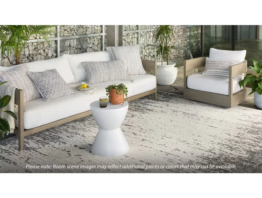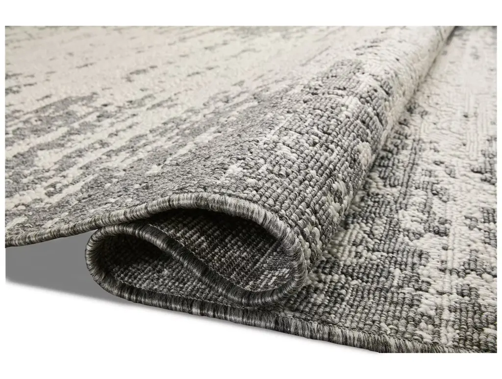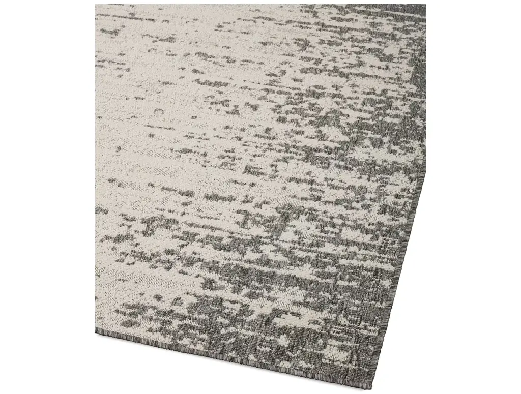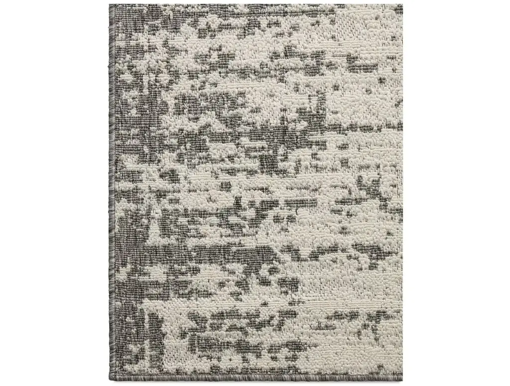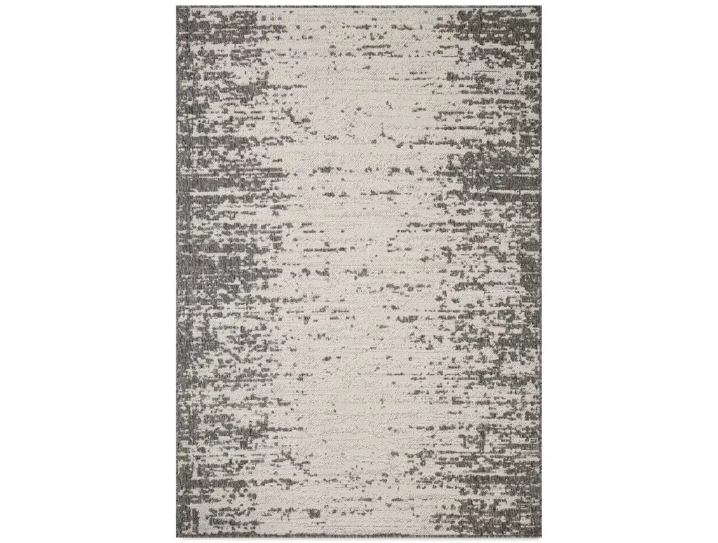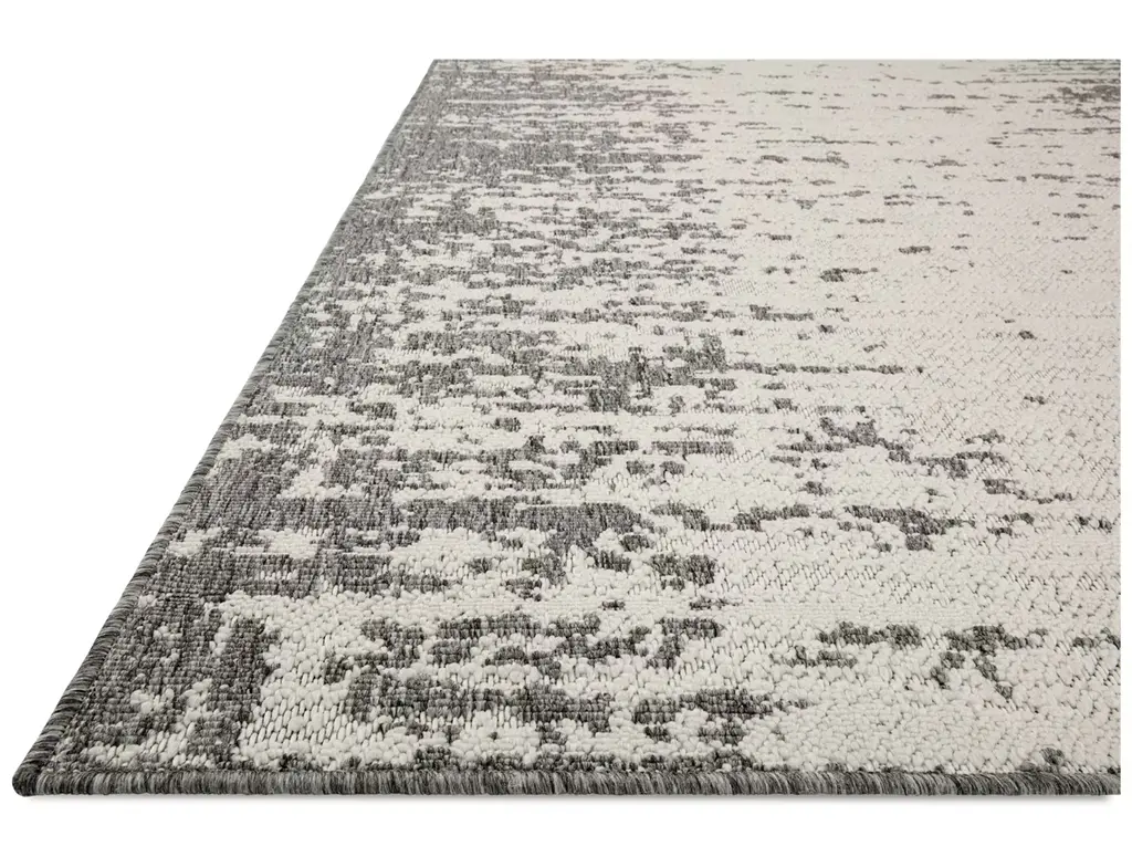 The Loloi Rainier Ivory/Grey Area Rug features a contemporary abstract pattern that will bring artful beauty to any room. This indoor/outdoor rug is power loomed in Egypt of synthetic fibers that withstand the elements.