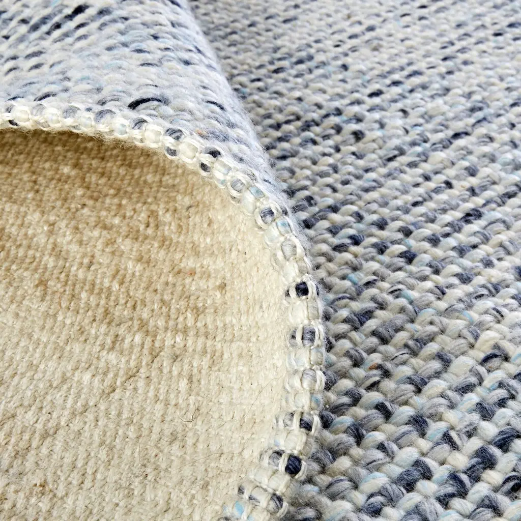 Suitable for use outdoors as well as inside, this space-dyed flat-weave rug can stand up to heavy traffic. Its soft palette of blues and grays makes it a welcome addition to just about any space. A rug pad is recommended to help prevent slipping and extend the life of the rug.