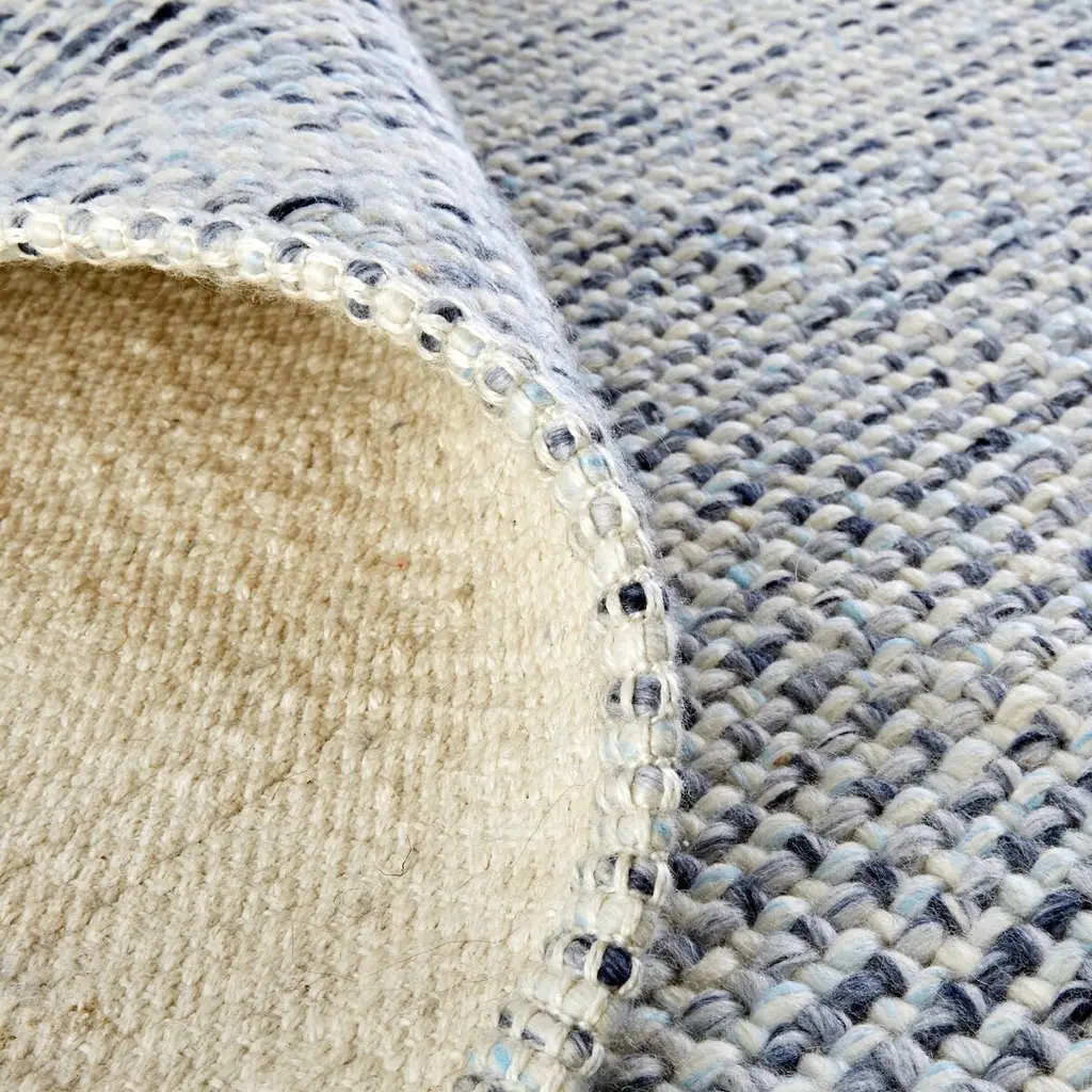 Suitable for use outdoors as well as inside, this space-dyed flat-weave rug can stand up to heavy traffic. Its soft palette of blues and grays makes it a welcome addition to just about any space. A rug pad is recommended to help prevent slipping and extend the life of the rug.