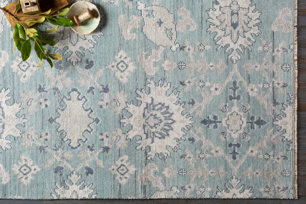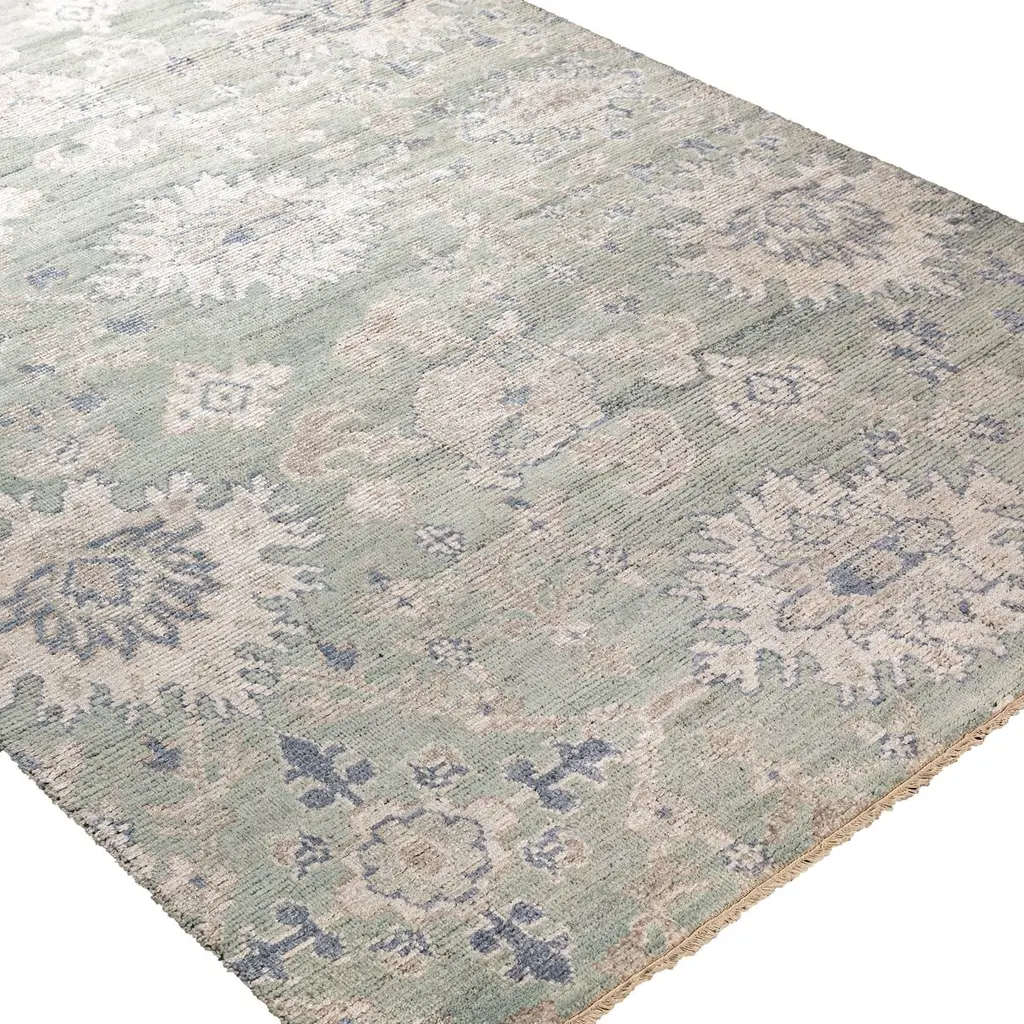 Silky viscose gives this hand-knotted rug its quiet luster while complementing the softness of the wool. The allover pattern and the inch-long fringe contribute to its time-honored allure. A rug pad is recommended to prevent slipping and extend the life of the rug.