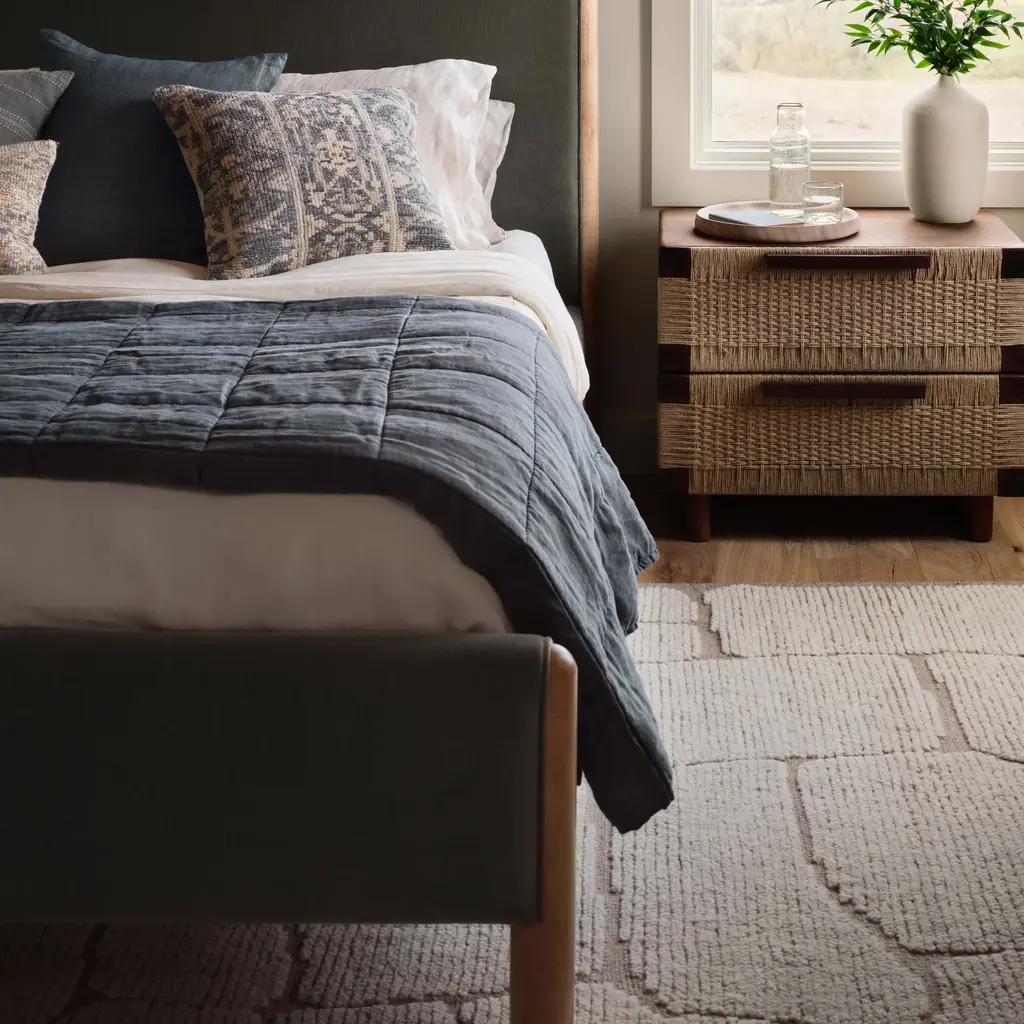 Add an organic touch to your space with this beautiful hand-knotted area rug, inspired by winding garden stones. Take a relaxing walk through the abstract forms of this hand-knotted area rug, inspired by winding garden stones. Bringing the tranquility of nature inside, this beautiful rug pairs an all-natural wool base with a chunkier wool in a lower pile, creating a contrast between calming shades of light mushroom and natural ecru. Style as a plush addition to a study or a quiet nook. Crafted in the Carpet Belt of India, every rug is hand-knotted over days at a workshop in Chedibeer. The work of a collective of over 60 artisans, every piece is made start to finish in a fair trade environment. We recommend a rug pad to prevent wrinkles and slippage. Not sure what size you need? Visit our Rug Size and Style Guide for more information.