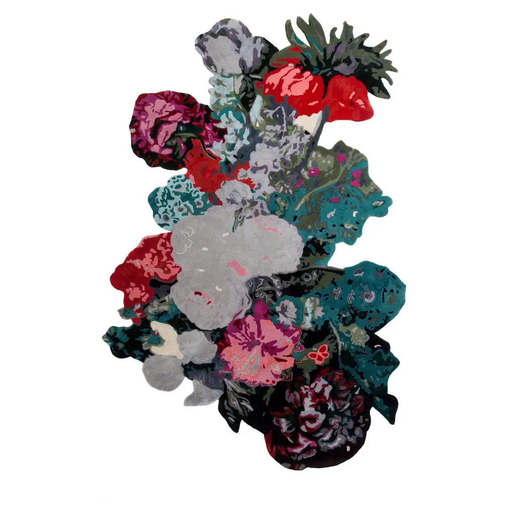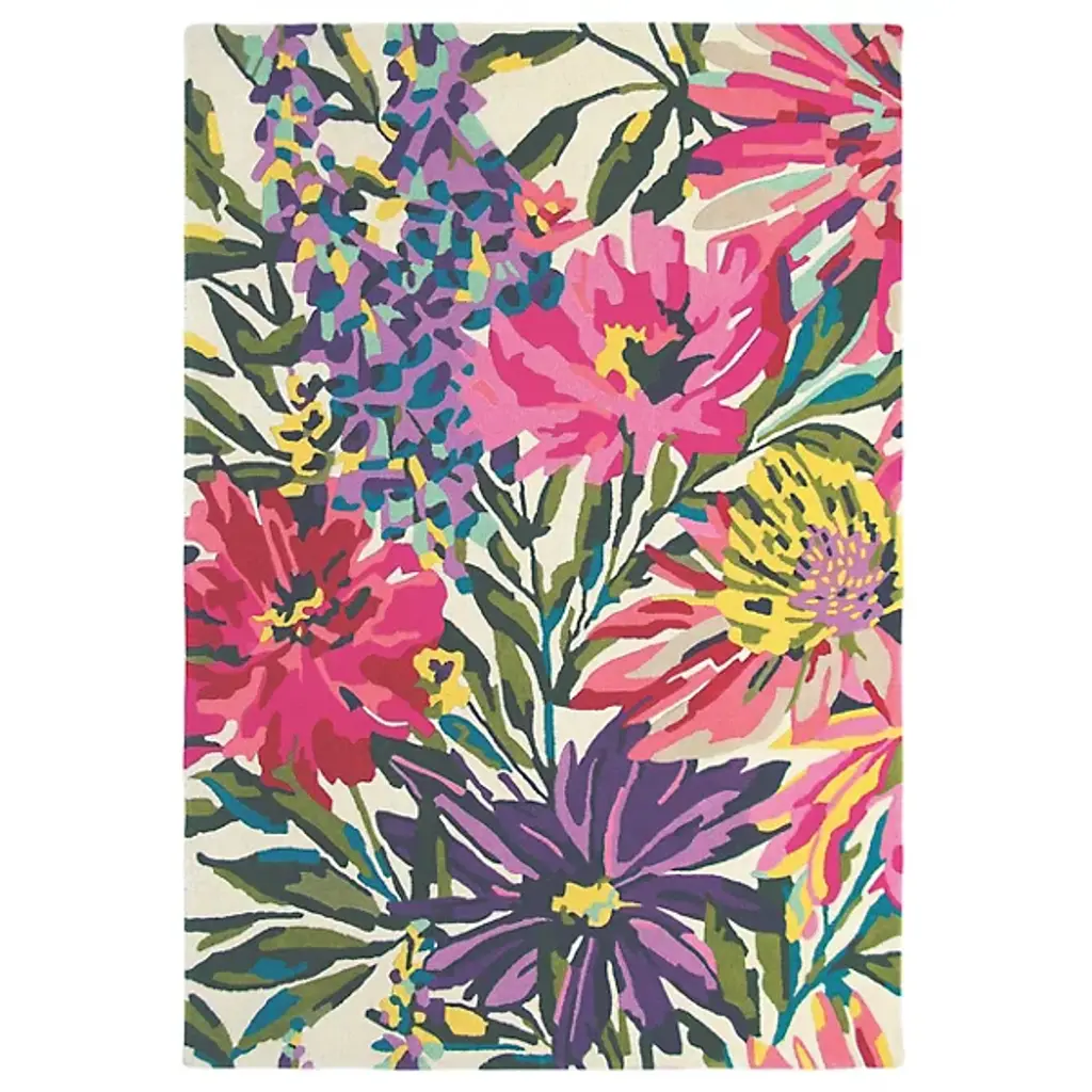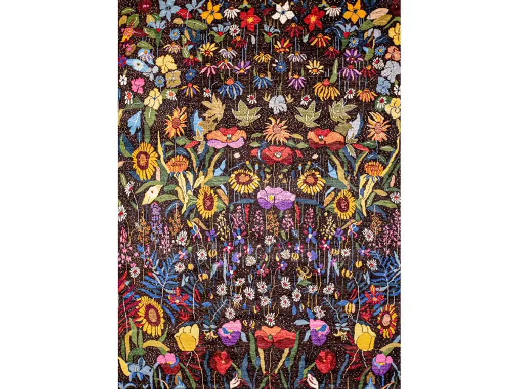 Charming and elegant in its simplicity, this vibrant rug will infuse naturalistic charm and elegance into a modern or minimalist interior. This pure-wool rug is hand-tufted and boasts a multicolored wildflower motif that expertly combines delicate colors with graphic details for a captivating design. From sunflowers and lilies to carnations and blue honeysuckles, realistic accents and the irregular edge enhance the rug's textural and visual allure. This exquisite rug will enrich any decor with its delicate color palette and charming design.
