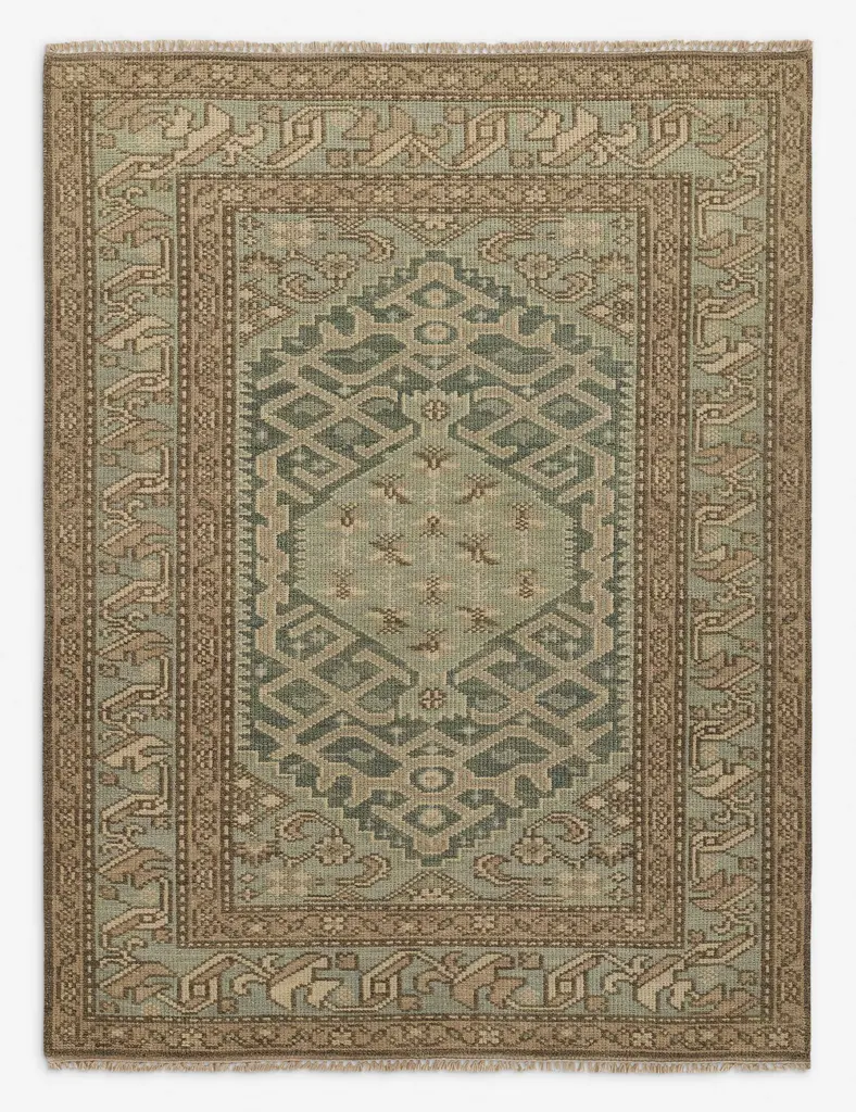Underpin your space with a timeless style. In a grounding palette of earth tones, the intricate motifs of this hand-knotted rug bring a traveled feel to any curation. The rug's natural wool fibers offer the perfect combination of softness and strength for lasting elegance in your design.