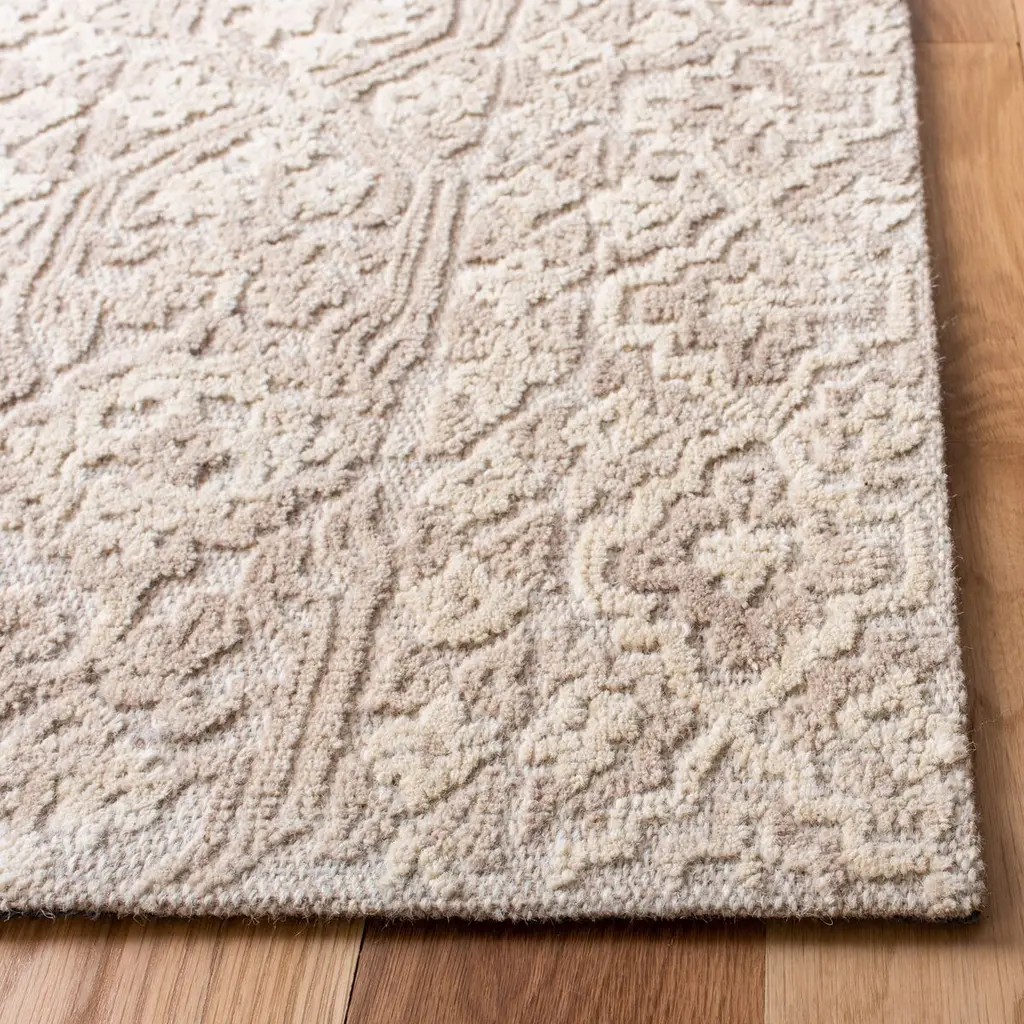 Introducing our exquisite 8' X 10' hand-tufted wool area rug, crafted with precision in India. The large rectangular rug bathes your living space in warmth with its soothing beige and light brown hues. The rich texture and superior construction reflect the legendary quality synonymous with hand-tufted techniques, ensuring durability and comfort underfoot. Imbued with an alluring Bohemian style, the rug's pattern exudes a vintage charm, blending intricate motifs within its posh design. Each detail of the captivating pattern contributes to a serene aesthetic that can harmonize with both contemporary and traditional decors. This timeless piece is not merely a rug; it is an heirloom that celebrates artisanal craftsmanship and sophisticated taste. Elevate your home's ambiance with this luxurious statement of elegance.