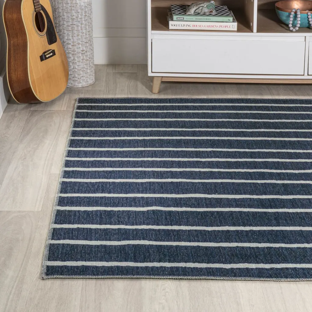 Stylish, durable, and machine washable: Who says a rug can't have it all? The strié effect of this polypropylene rug's stripes give it artisanal allure. A rug pad is recommended to help prevent slipping.