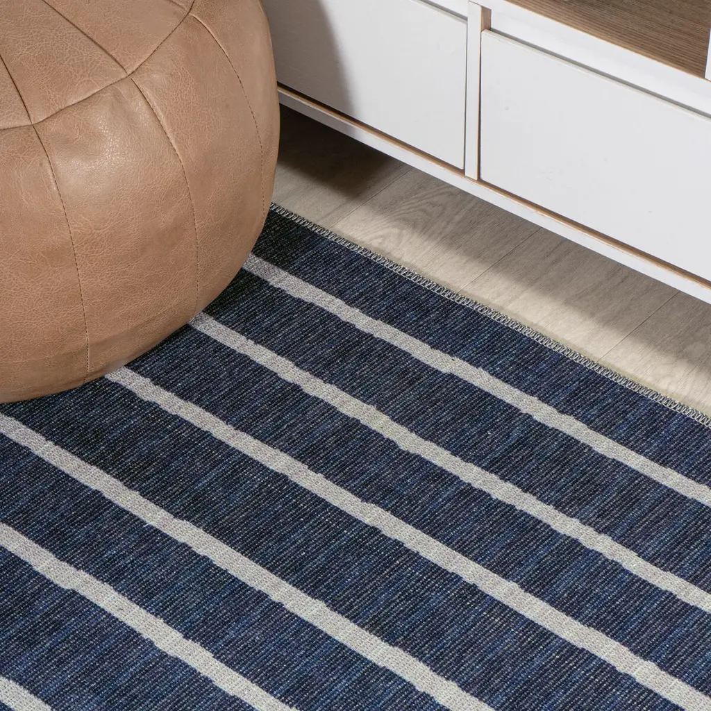 Stylish, durable, and machine washable: Who says a rug can't have it all? The strié effect of this polypropylene rug's stripes give it artisanal allure. A rug pad is recommended to help prevent slipping.