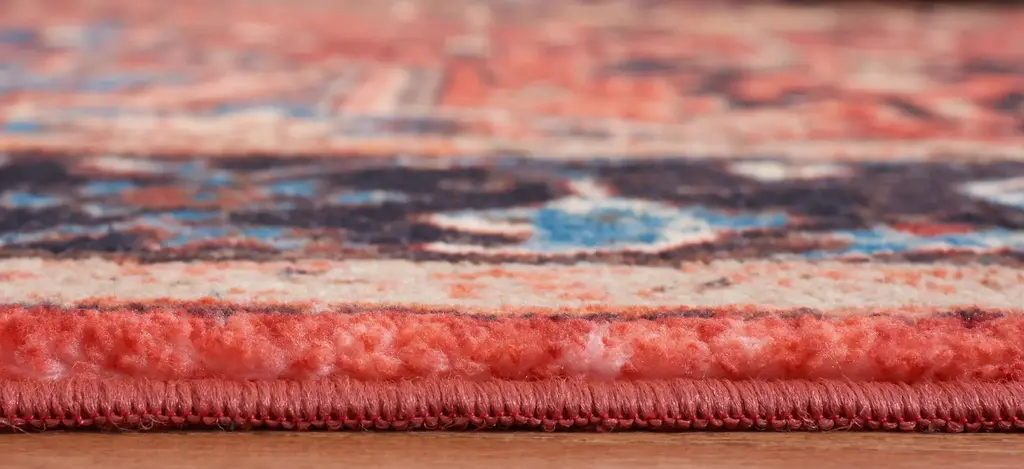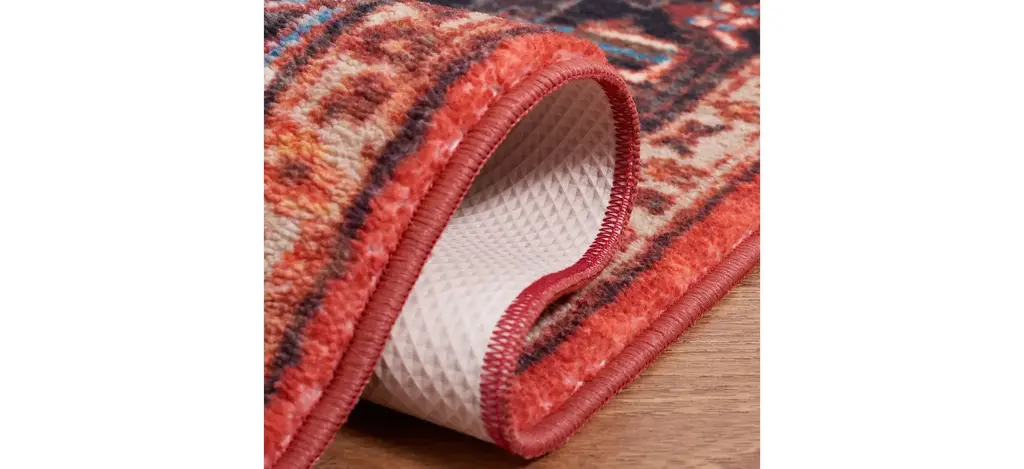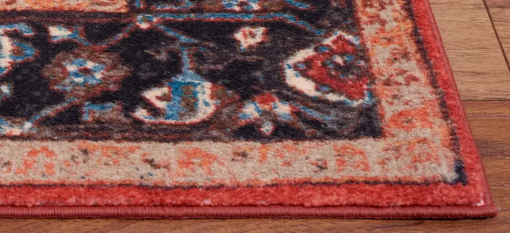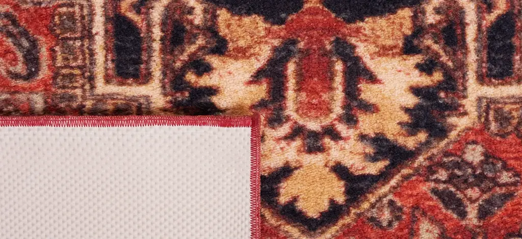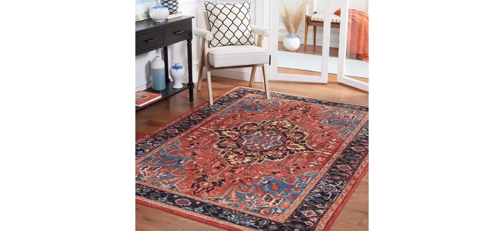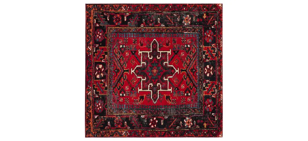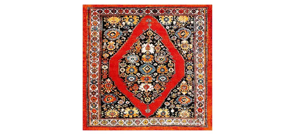 Antique rug artistry is reimagined in the brilliant hues, striking design, and any-room high performance of the Rasmin Square Area Rug. This trendy, transitional rug is machine washable, bringing high-style elegance to even the most well-traveled areas of the home. It is made using soft synthetic yarns with a foam latex backing for a comforting feel underfoot and long lasting charm.