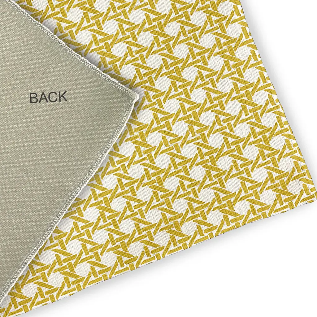 Create a tropical paradise in your home with a Rattan Geometric Indoor/outdoor Rug from the Palm Beach Collection. Everyone will delight in the space defining design brought to your porch, patio, kitchen, or bathroom by this area rug. The artistic and colorful design is printed on a soft polyester base with a skid resistant backing, making it a perfect way to add color, flare and personality to any indoor or outdoor space. To clean, use a mild soap and lay flat to dry.