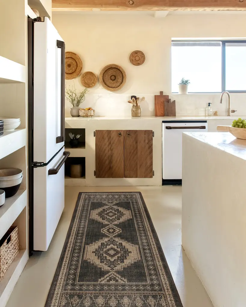 Elevate your favorite space with our distressed Rayne Charcoal & Tan Rug. Inspired by intricate artistry, this globally-inspired design features an ornate border and deep grey and warm taupe motifs, complemented by subtle pops of wine red. Water-resistant, stain-resistant, and machine-washable. Rug colors may vary slightly according to your device and the lighting in your space.