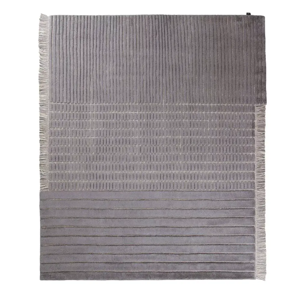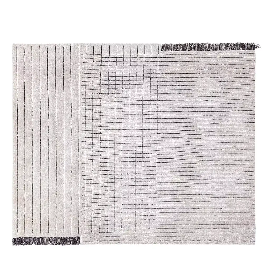 Rd Grid Berber Fringed Black & White Wool Rug By Rodolfo Dordoni