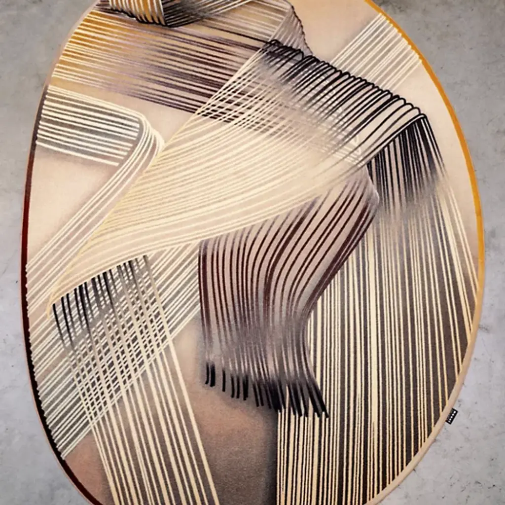 The Re-Mingle Oval Area Rug by Moooi Carpets gives your living space a contemporary look. Your rug is the work of designer Claire Vos. With this project, Vos focuses on the depictions of digital threads. Intricate, curved motifs enhance this rug’s sense of dimensionality. Experimental shading techniques produce within this piece an optical illusion.