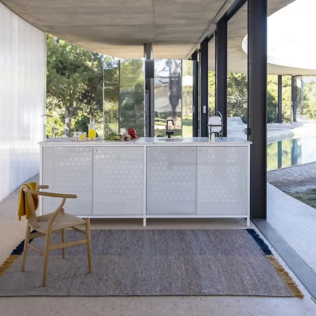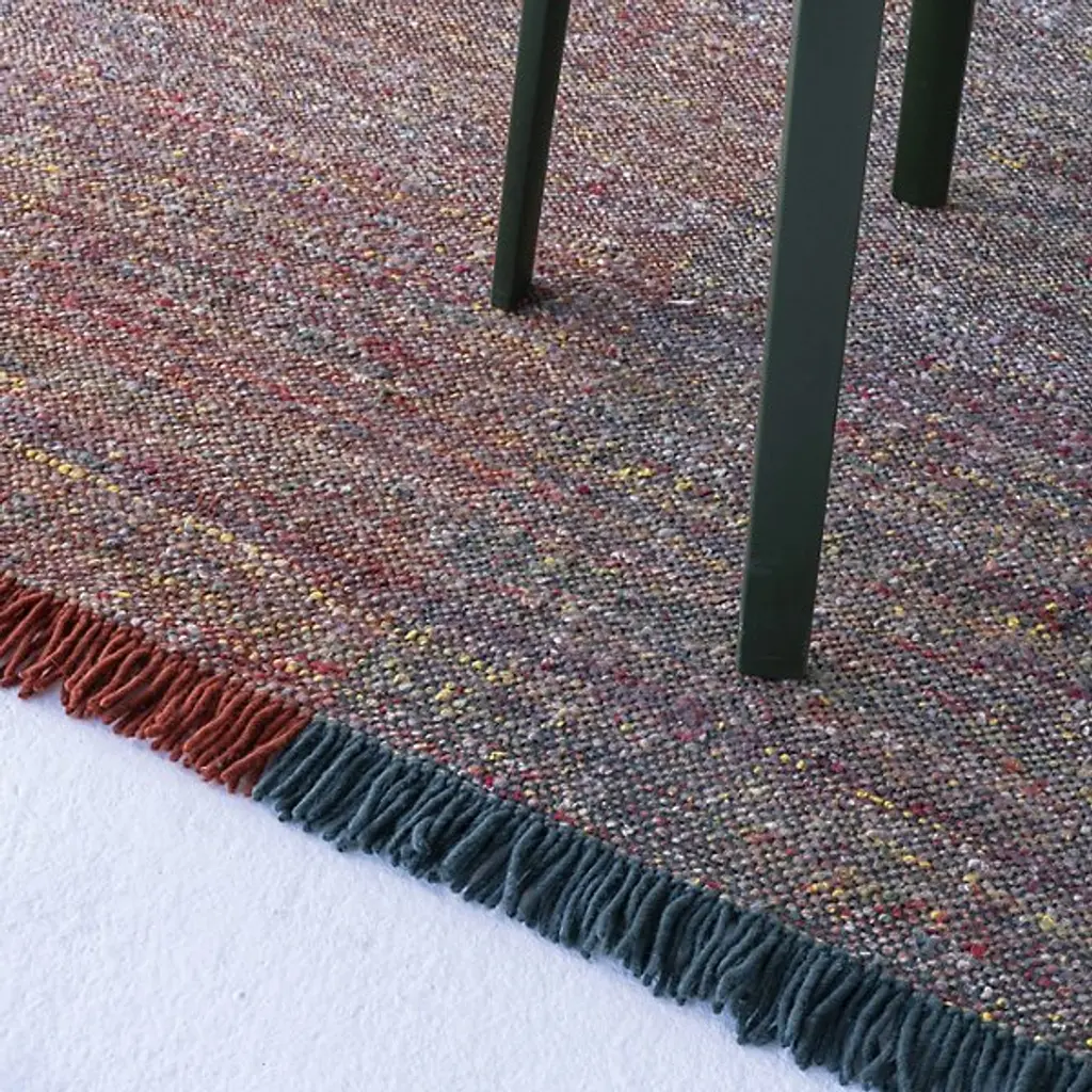 The Re-Rug Area Rug by Nanimarquina fuses style with environmentally conscious artisanship. The Re-Rug serves as a method for utilizing suppliers’ leftover wool. With the goal of minimizing C02 emissions in mind, founder Nani Marquina creates a work of art that blends 50% recycled wool and 50% virgin wool. This rug’s unique half-and-half material blend is celebrated by the varying dyes that color this decorative piece. This rug is fashioned out of New Zealand wool and exemplifies the dhurrie tradition of weaving prevalent in Spain.