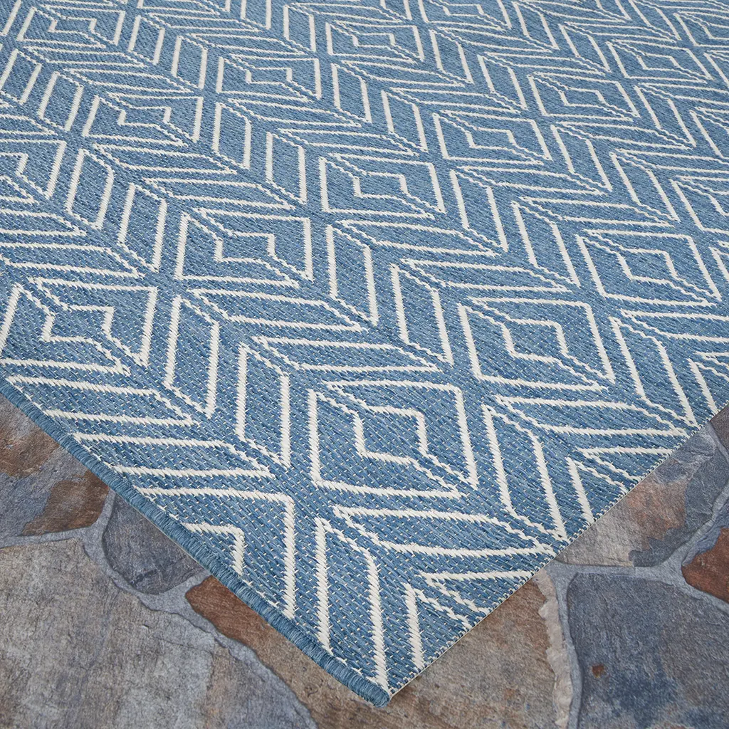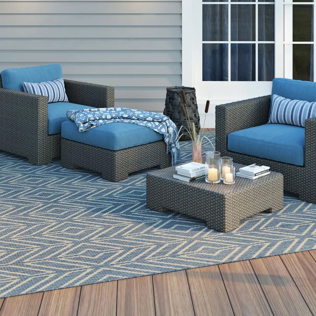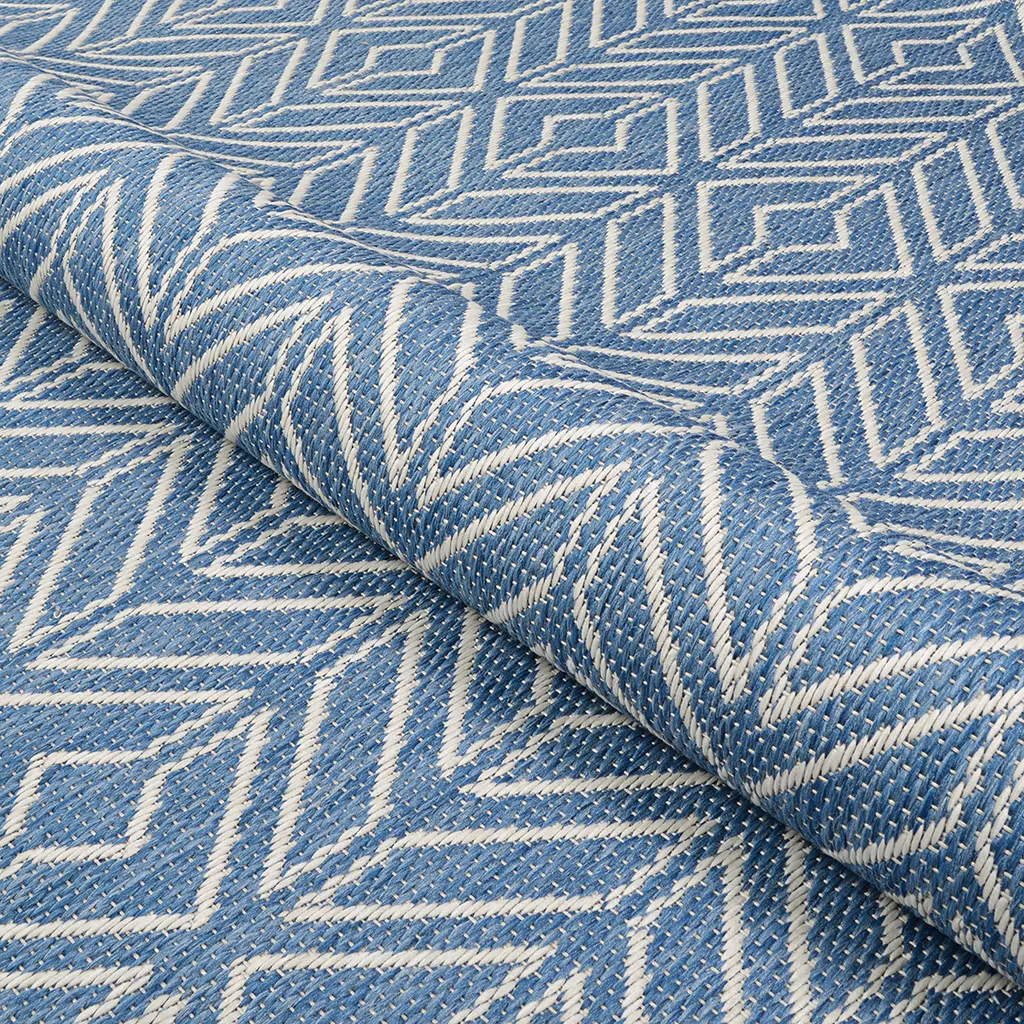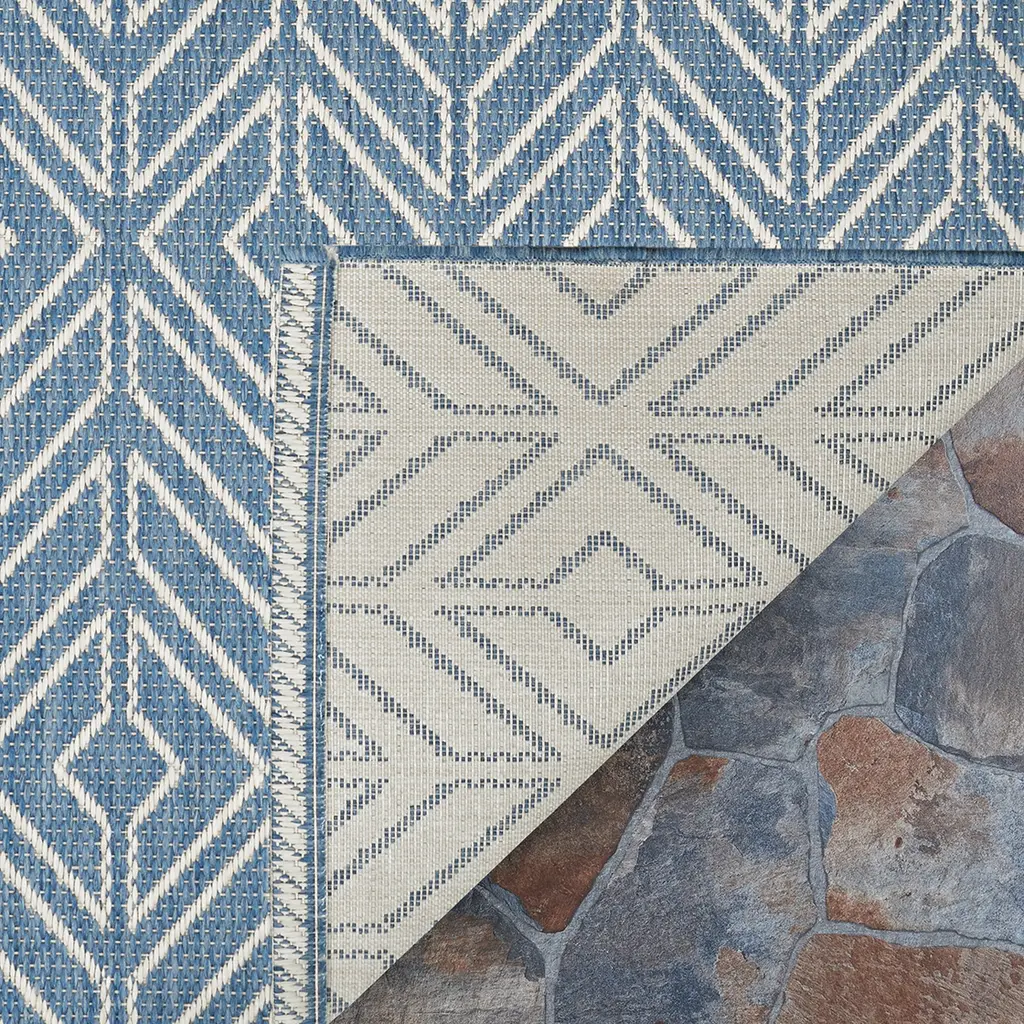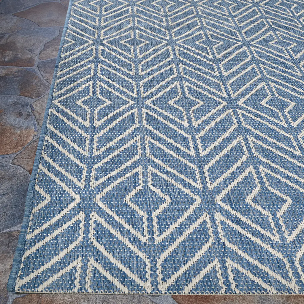 This flat-weave rug's geometric pattern is certain to liven up your porch, patio, or entry. Resistant to fading, water, and mildew, the rug will stand up to the elements as well as to heavy traffic. A rug pad is recommended to help prevent slipping.