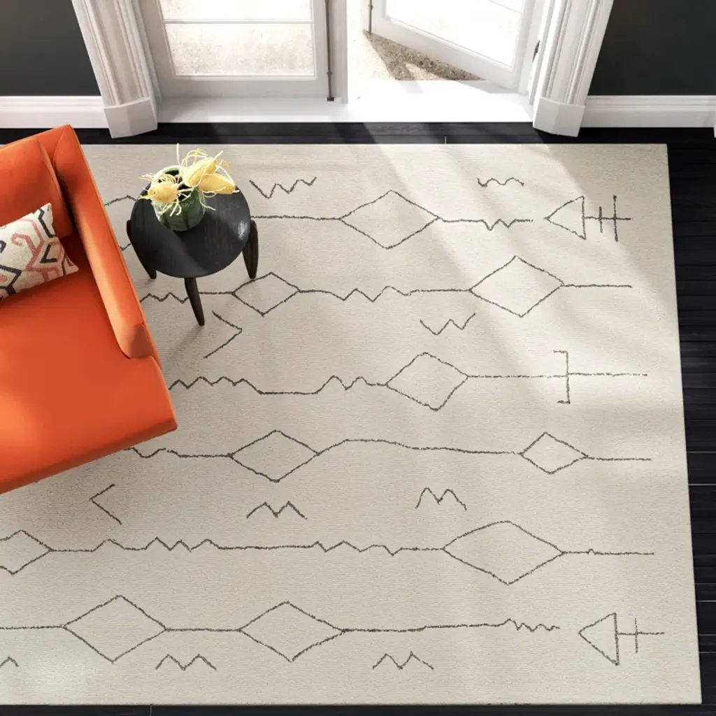 This exquisite Dena area rug will add a touch of elegance to any room in your home. It is meticulously hand-tufted from soft wool, creating a luxurious medium pile that you'll love to walk on. The handmade construction ensures long-lasting quality and durability, making this the perfect choice for busy households. This beautiful piece of floor art comes from India and is sure to be an eye-catching focal point in your interior decor. To ensure optimal comfort and cushioning, we recommend using a rug pad (not included). For easy maintenance, simply spot clean as needed.