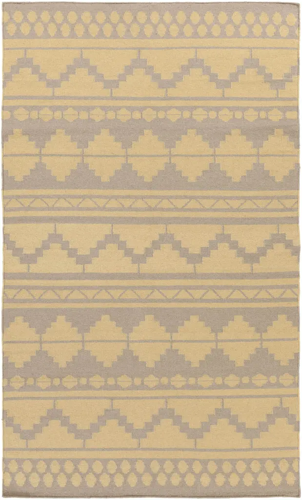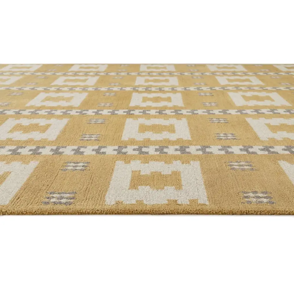 This kilim rug features distinctively rustic patterns and a dynamic color palette for a bold lodge vibe. Vibrant gold and brown tones along with intricate motifs bring a dynamic design to any room in your home. Hand-tufted from wool, its 0.25" pile height makes it ideal for high-traffic locations like your living room or entryway. And to keep it from slipping and sliding around underfoot, we think adding a rug pad is a good idea (sold separately).