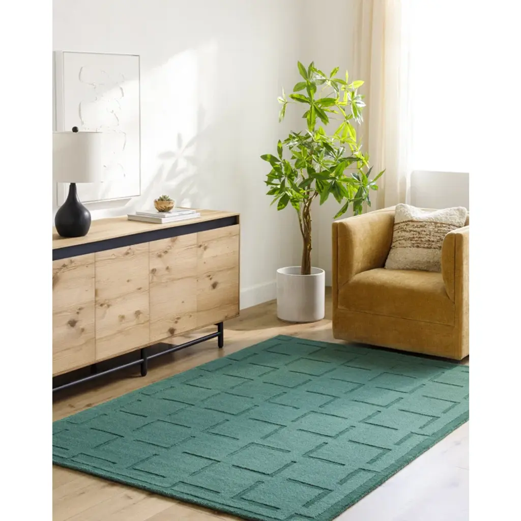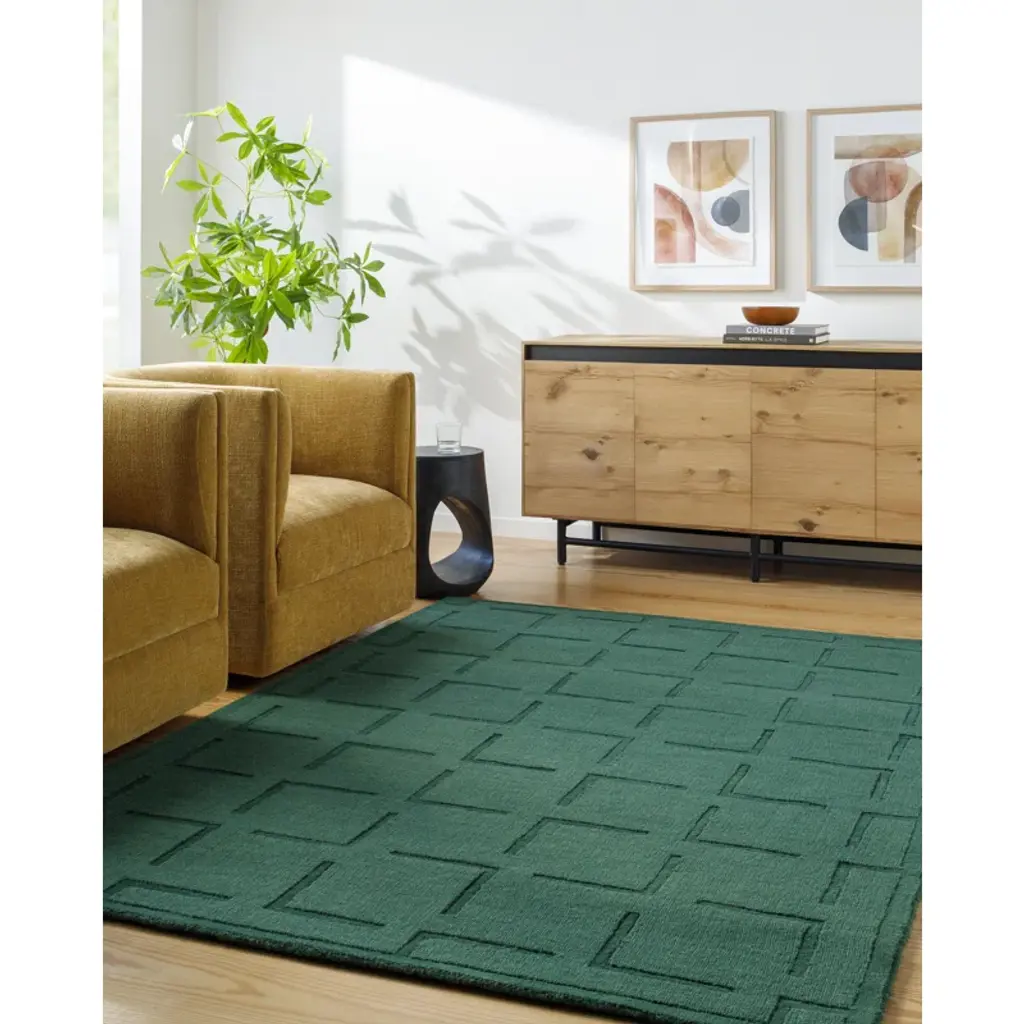 Rectangle Loretto Geometric Hand Loomed Wool Area Rug In Green