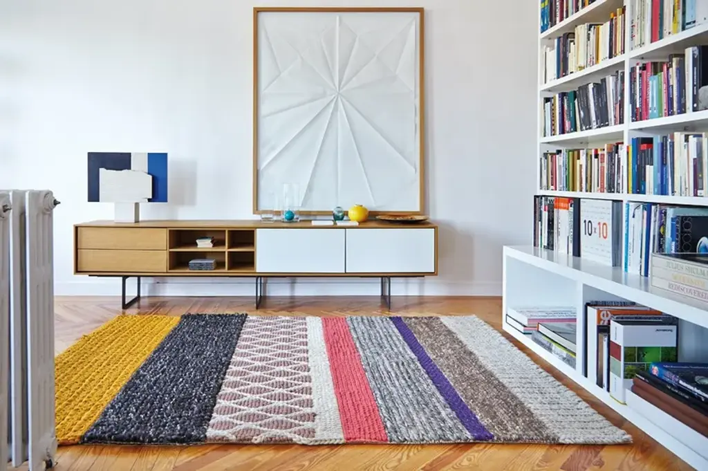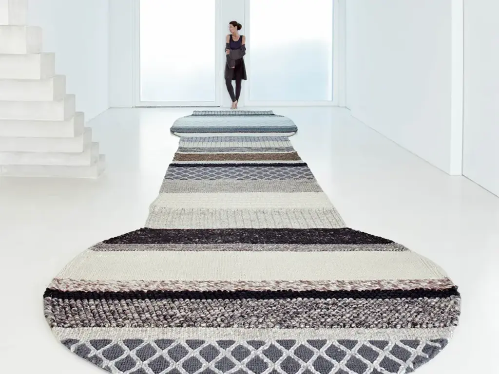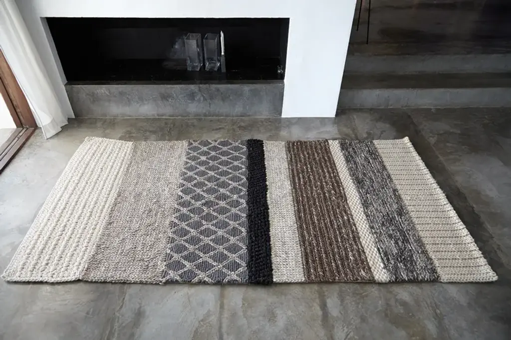 Fibre composition: 100% new wool.Backsizing: Cotton.Total weight approx: 5'5 kg/m² - 1'1 lbs/ft²Total height approx: 40 mm.Manufacturing technique: HAND LOOM.