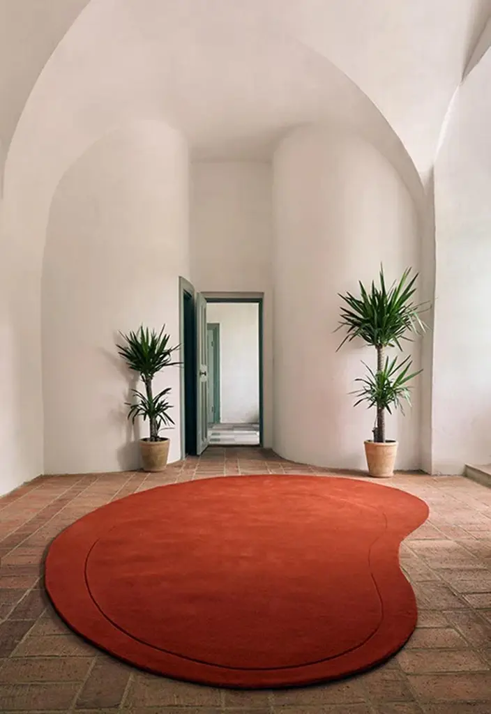 Residue Tomato Wool Rug is a unique, big rug with one organic stripe that makes a difference in the height. With its structured wool and the high and low cut, Residue can be an art piece to the room but at the same time, fulfill its functions as a rug. The Residue Rug is handmade of 100% wool and as each product is a unique craft which means it can be different from each other.