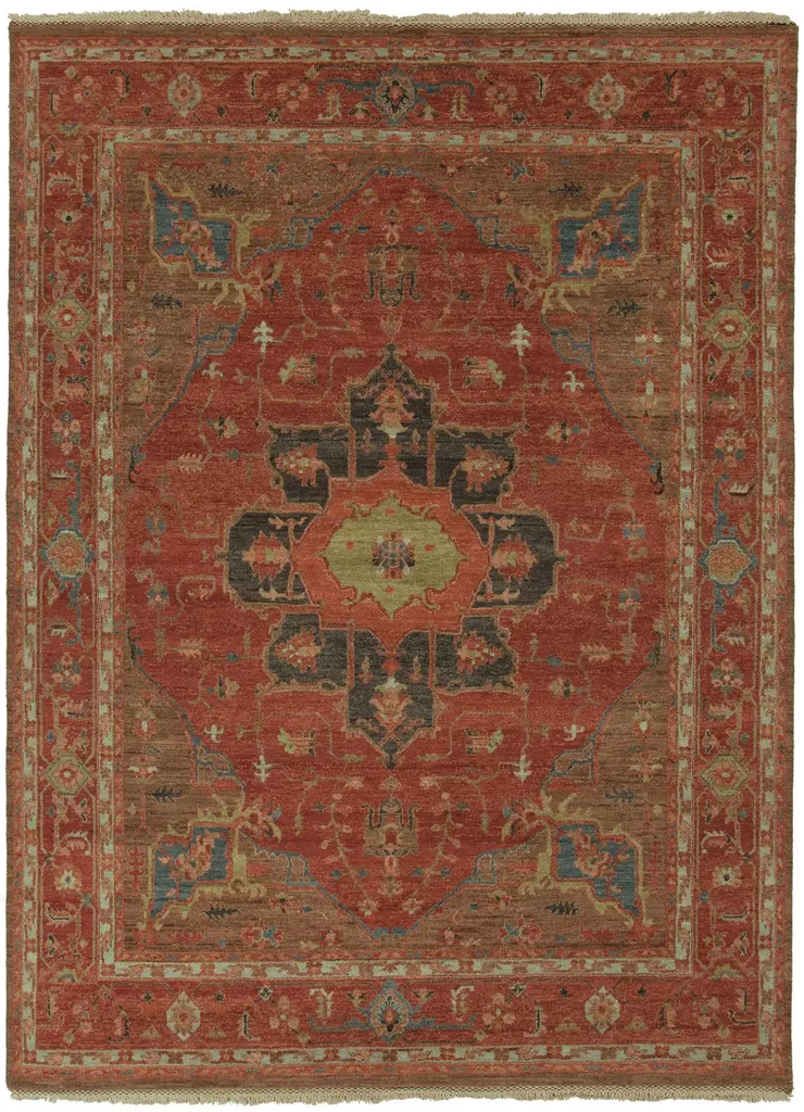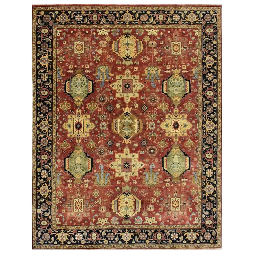 A vibrant centerpiece rug hand-crafted for those who revel in regal palettes and meticulously detailed canvas inspired by the ancient palaces. Mesmerizing in scope & detail, this traditional wool rug is one-of-a-kind and is hand-knotted by artisans using weaving techniques passed down from generation. Handmade in India.