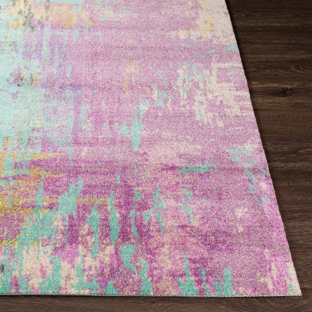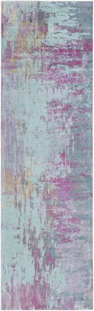 Collection: Redland Colors: Aqua, Purple, Magenta, Teal, Medium Gray Construction: Machine Woven Material: 100% Polyester Pile: Medium Pile Pile Height: 0.24" Styles: Contemporary Backing: Canvas Made In: China Thickness: 0.59" Price Range: $$$$$ (Affordable)
