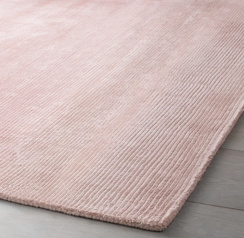 Our Reeve Stripe rug offers a dreamy softness and shifting, shimmering hues. Double rows of silky loops alternate with stripes of hand-sheared pile, their relaxed lines created by hand-guided weaving.
