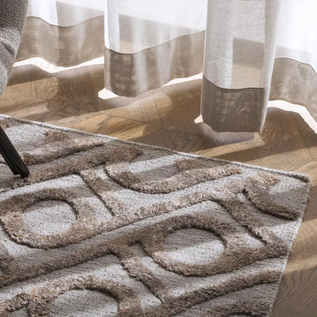 Inspired by coastal landscapes the Shapes weave is a refreshingly bold and tactile style. This eye-catching weave is created from a harmonious blend of tonal Viscose, wool and cotton. Perfect for bare feet and resort living.All ground control rugs are hand-loomed to order – Please allow 6-8 weeks for delivery. If you need a piece faster than this, please reach out and we will do our best to accommodate your timeline.We are able to approve a 50% deposit to make your rug, with balance prior to delivery.Composition: Wool, Rayon CottonSee our T & C’s and Product Care for further information.Also available in: Shapes Weave - Flint.