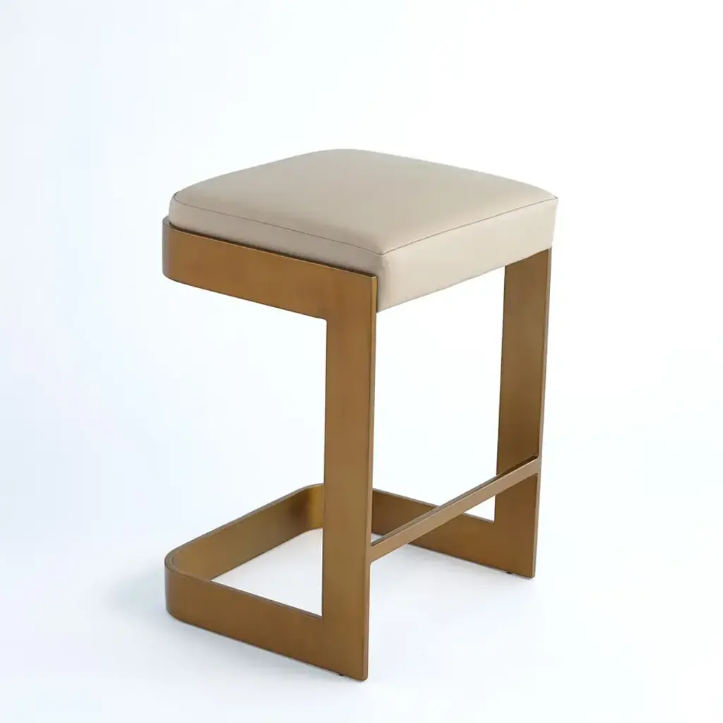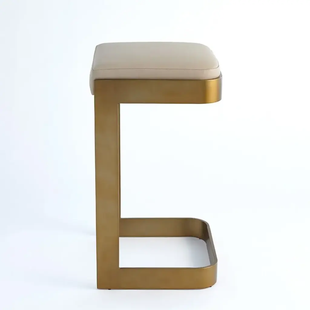 Attractive and useful contemporary barstools are made from sturdy antique brass mild steel and cushioned ivory leather seats. Available in bar or counter heights. From a fashion forward perspective, Global Views offers accessories, furniture, statement lighting, and an assortment of rugs and mirrors to add beauty and joy to your home.