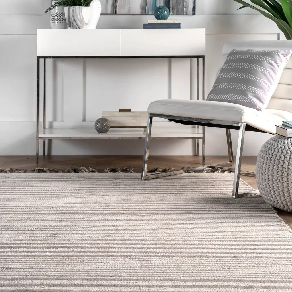 Regency Stripes With Tassels Rug | Light Grey - 5' X 8'