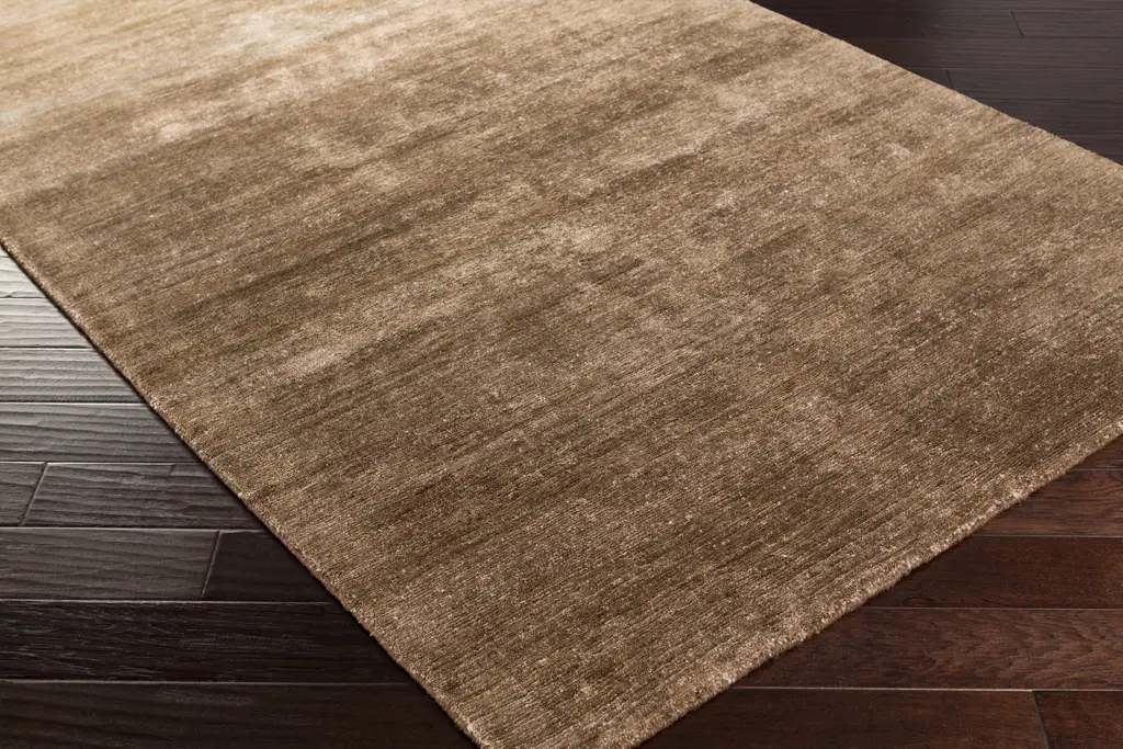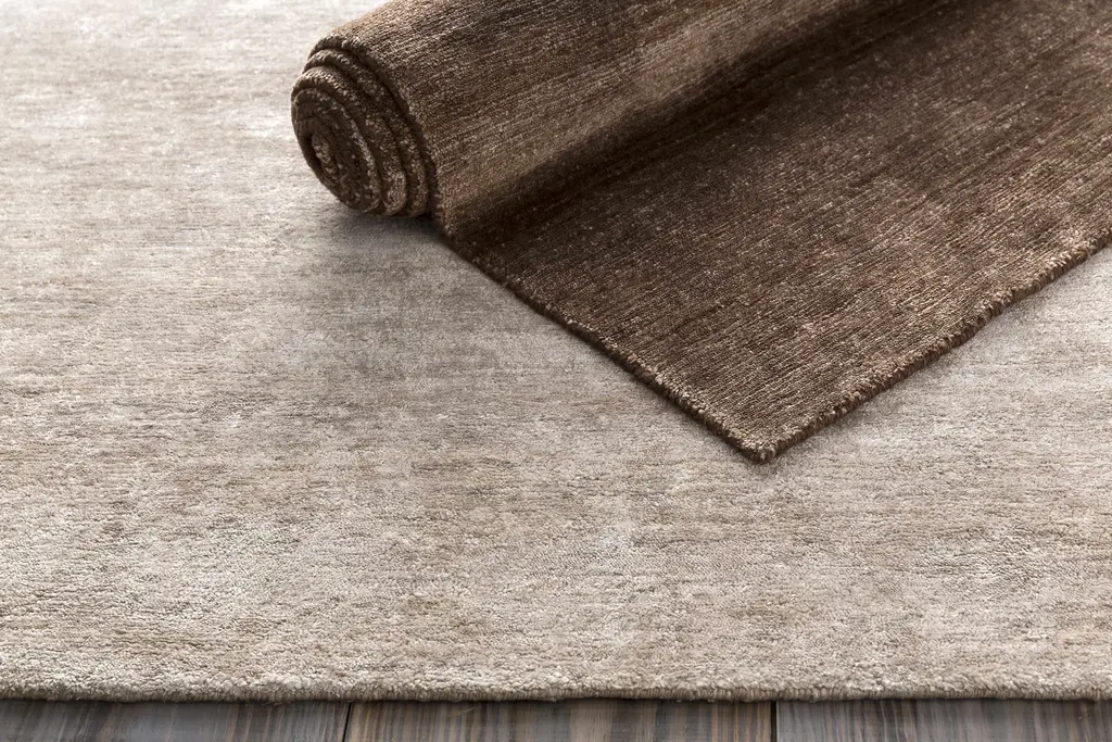 Collection: Reigate Colors: Ivory, Light Brown Construction: Hand Knotted Material: 100% Viscose Pile: Medium Pile Pile Height: 0.39" Styles: Solid & Striped Made In: India Thickness: 0.39" Price Range: $$$$$ (Premium)