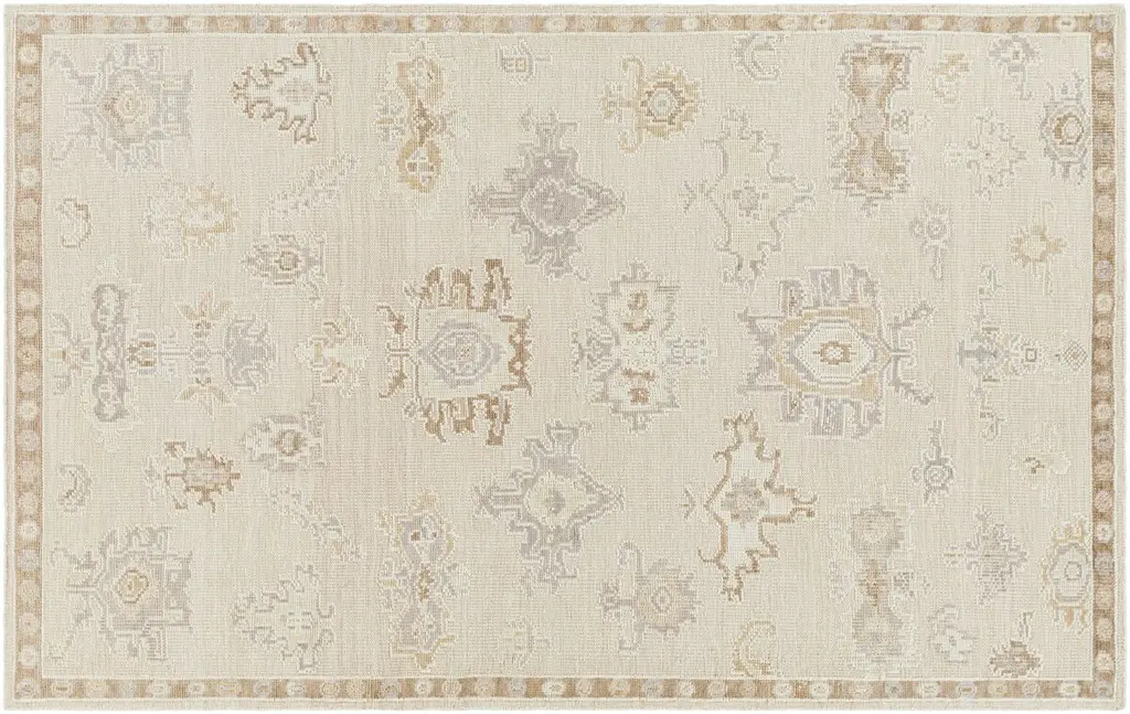 This rug was hand-knotted of recycled PET yarn, a durable material known to hold up to the elements and withstand wear and tear. Its neutral palette and time-honored motifs make it an inviting addition to any space, especially high-traffic ones. A rug pad is recommended to help prevent slipping and extend the life of the rug.