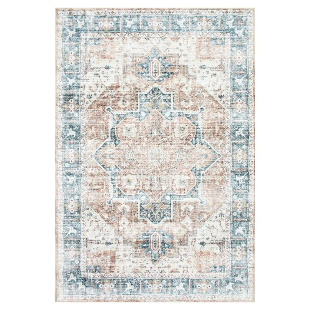 The Reina REN 2303-2305 Area Rug from Surya enlivens indoor living spaces with a touch of fine rustic detail. A durable, tightly-woven rug produced in Turkey, it uses a canvas backing to support a medium pile polyester weave enlivened by a vibrant pattern of rustic floral shapes that contrast well with the lighter background color.