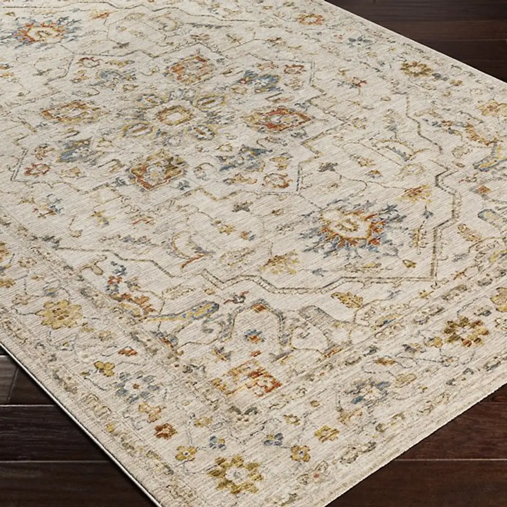 The Reina REN 2303-2305 Area Rug from Surya enlivens indoor living spaces with a touch of fine rustic detail. A durable, tightly-woven rug produced in Turkey, it uses a canvas backing to support a medium pile polyester weave enlivened by a vibrant pattern of rustic floral shapes that contrast well with the lighter background color.