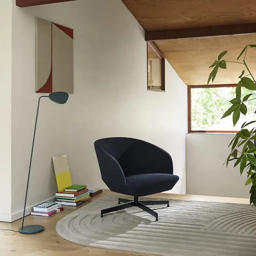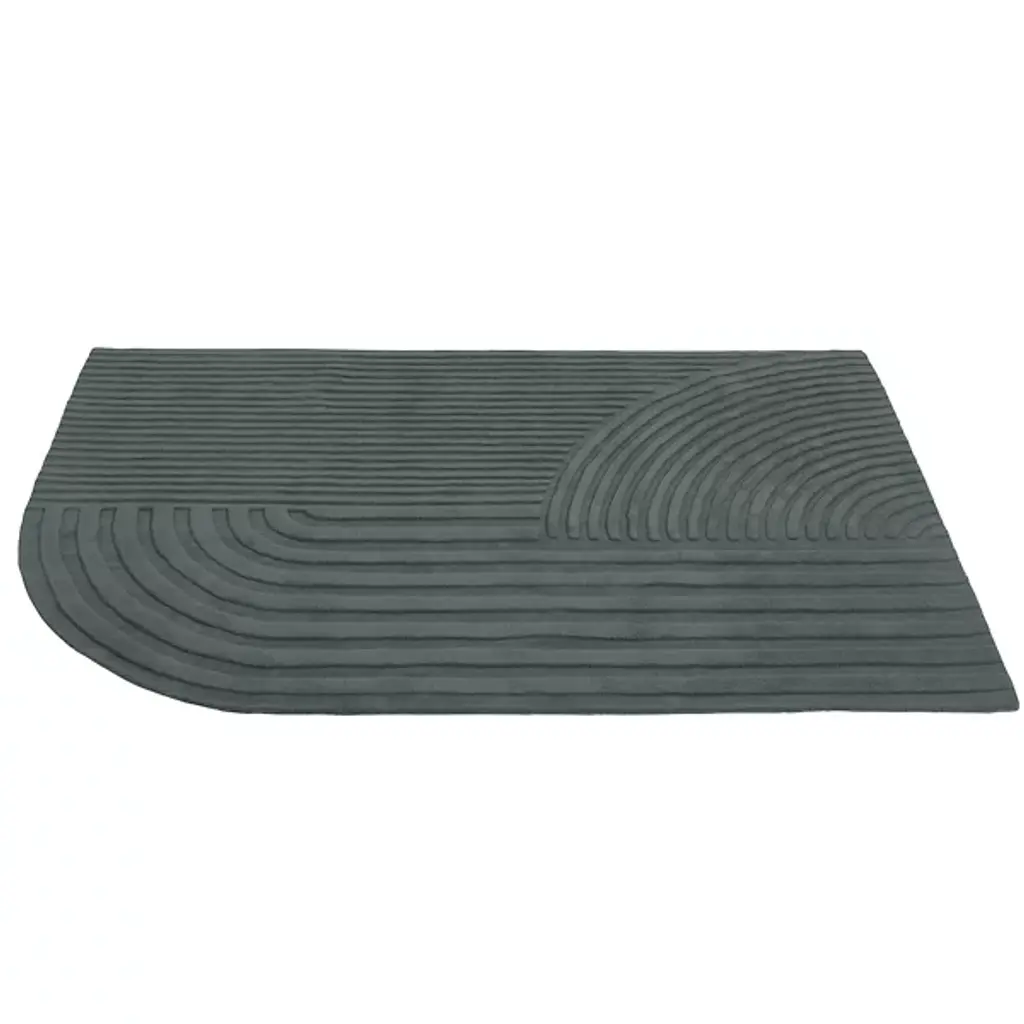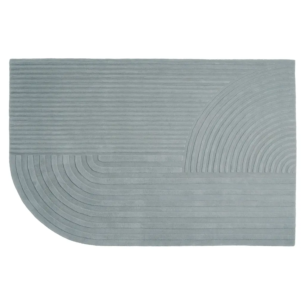 Decorate your home with the Relevo Rug by Muuto. This rug is the artistic creation of Studiopepe. Your rug takes on an abstract shape that is inspired by furrowed, hypnotic paths of land art. A contoured corner makes a distinctive contrast alongside this rug’s straight edges, while intricate shadows create the appearance of a two-tone design. The Relevo rug is composed of 80% wool and 20% cotton for your comfort. Your rug is made in the hand-tufted tradition and features a cotton backing. The eye is drawn to the striped pattern seen throughout Relevo’s surface.