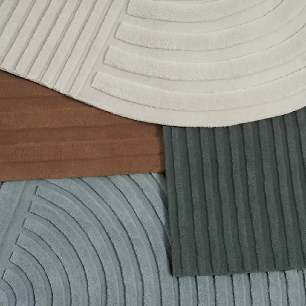 Decorate your home with the Relevo Rug by Muuto. This rug is the artistic creation of Studiopepe. Your rug takes on an abstract shape that is inspired by furrowed, hypnotic paths of land art. A contoured corner makes a distinctive contrast alongside this rug’s straight edges, while intricate shadows create the appearance of a two-tone design. The Relevo rug is composed of 80% wool and 20% cotton for your comfort. Your rug is made in the hand-tufted tradition and features a cotton backing. The eye is drawn to the striped pattern seen throughout Relevo’s surface.