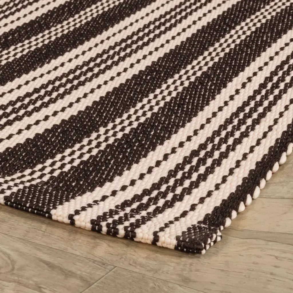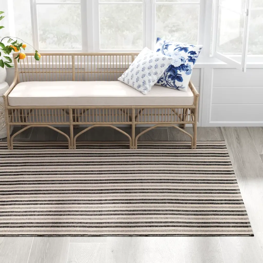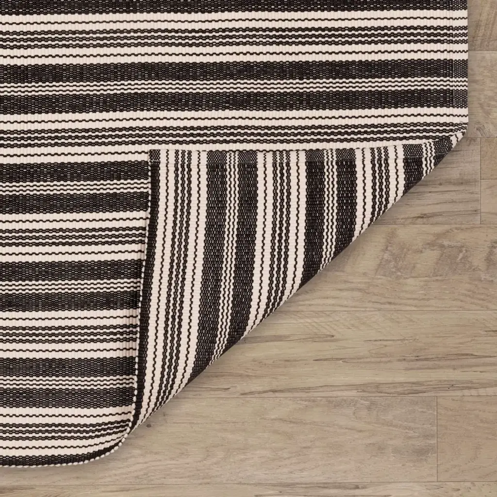 Remat Ticking Stripe Black/ivory Handwoven Indoor/outdoor Rug