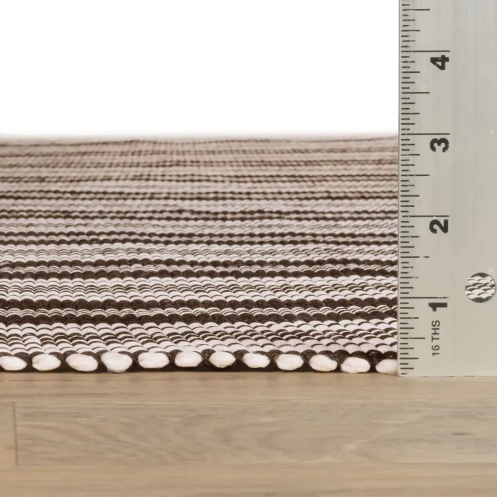 Classic stripes are always in style, and this versatile flatwoven rug is durable enough to stand the test of time. Densely constructed from an easy-care, high-performing fiber that is weather-resistant, you can use this rug to define spaces inside and outside your home. It lays flat and is thin enough that it won't obstruct doorways. Quick drying and easy to clean; simply shake, vacuum, or hose off.