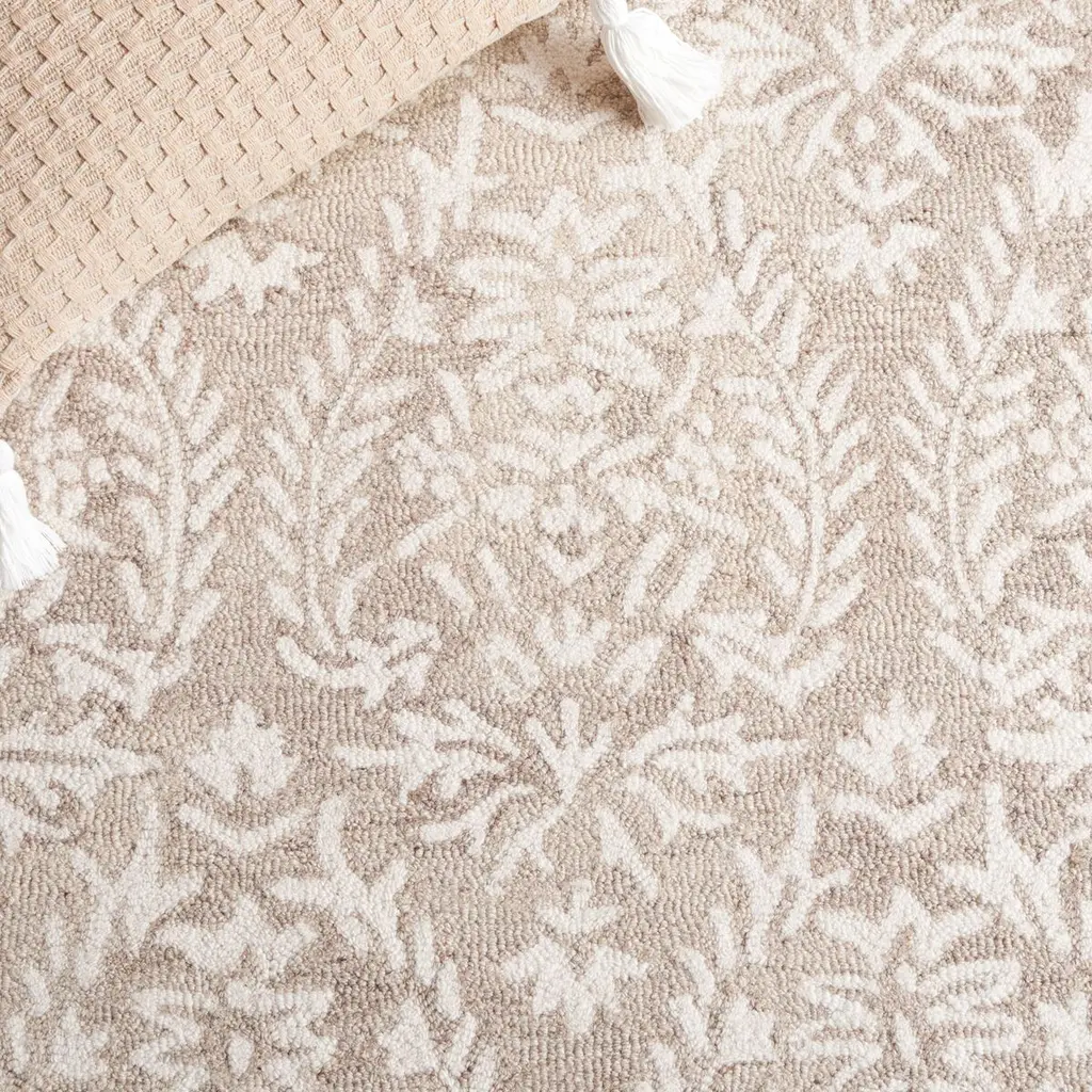Elevate your home decor with this elegant area rug, sized at 3 feet by 5 feet, perfect for adding a touch of sophistication to any room. The rug features a beautiful blend of blue and ivory hues, creating a serene ambiance. Its small rectangular shape and low profile height of 3/8 inch make it a versatile addition to your space. Crafted using the hand tufted technique, this rug boasts a wool pile that offers a soft and inviting texture underfoot. Originating from India, it embodies a traditional style with its intricate floral flower pattern, resonating a classic charm and timelessness. This rug effortlessly combines style and comfort, making it a delightful choice for any living area. Transform your interiors and create a welcoming atmosphere with this graceful decorative piece.