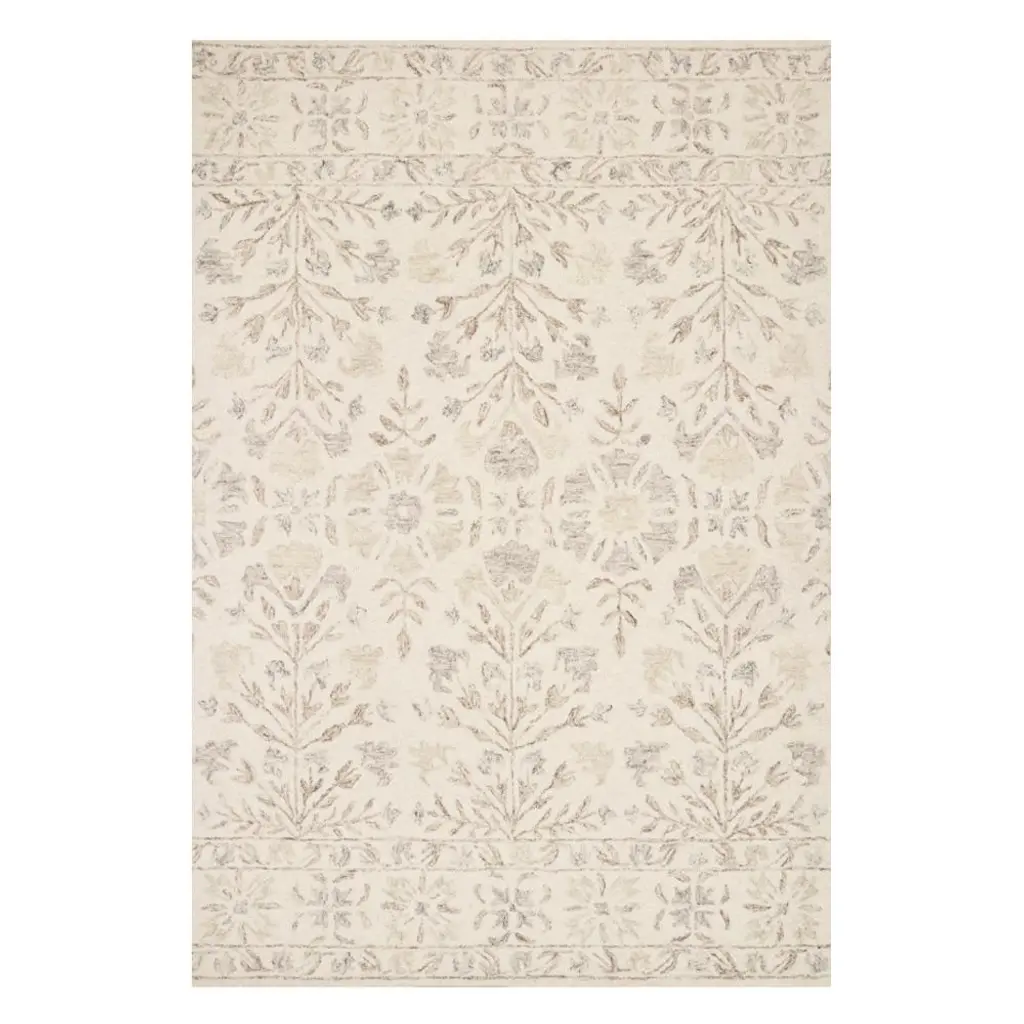 Elevate your home decor with this elegant area rug, sized at 3 feet by 5 feet, perfect for adding a touch of sophistication to any room. The rug features a beautiful blend of blue and ivory hues, creating a serene ambiance. Its small rectangular shape and low profile height of 3/8 inch make it a versatile addition to your space. Crafted using the hand tufted technique, this rug boasts a wool pile that offers a soft and inviting texture underfoot. Originating from India, it embodies a traditional style with its intricate floral flower pattern, resonating a classic charm and timelessness. This rug effortlessly combines style and comfort, making it a delightful choice for any living area. Transform your interiors and create a welcoming atmosphere with this graceful decorative piece.