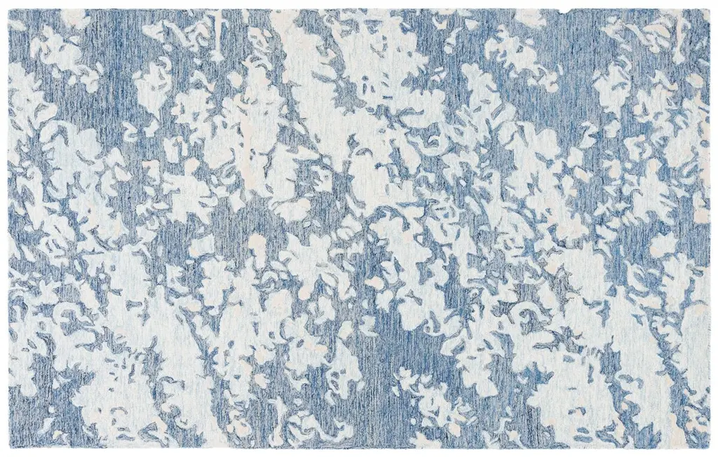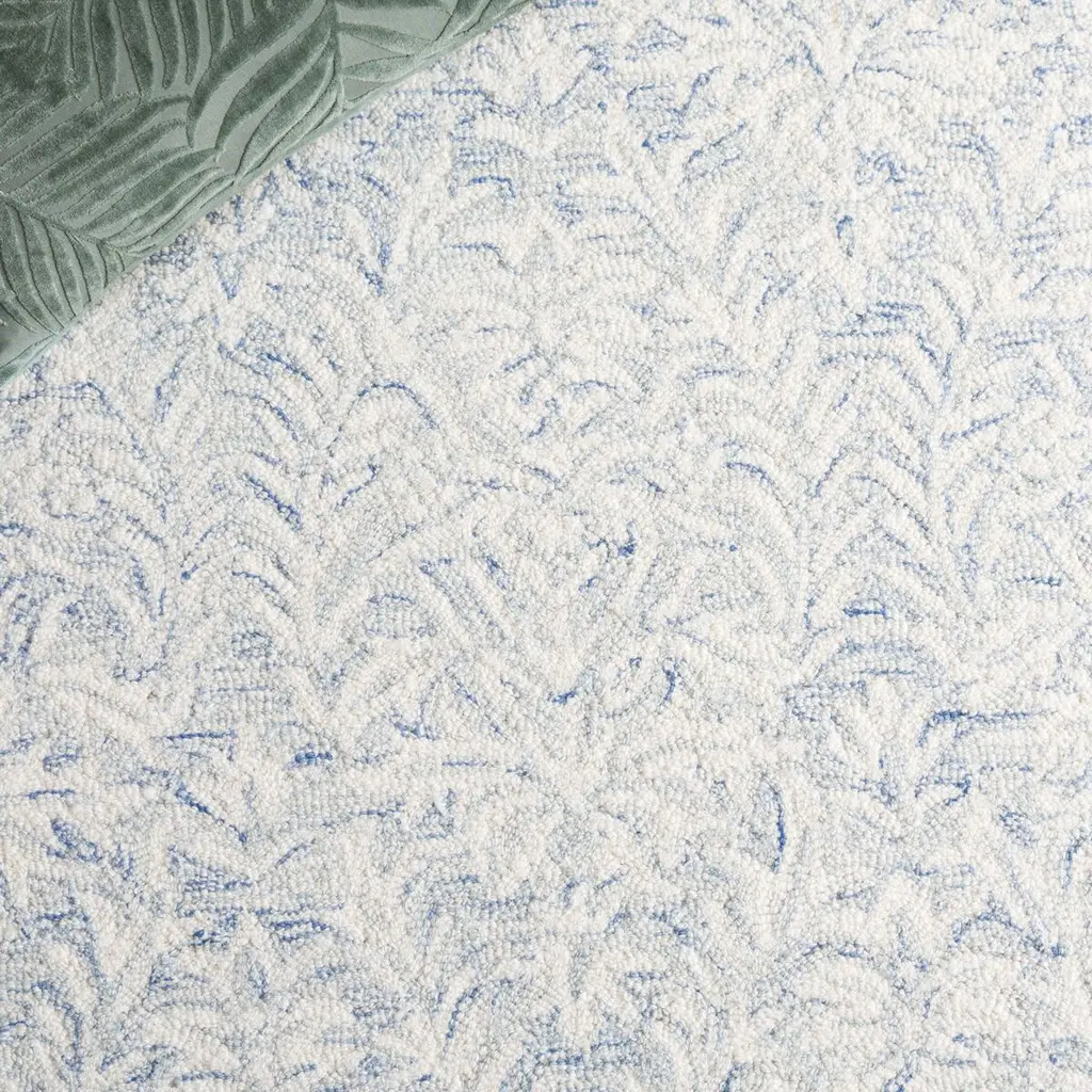 Elevate your home decor with this elegant area rug, sized at 3 feet by 5 feet, perfect for adding a touch of sophistication to any room. The rug features a beautiful blend of blue and ivory hues, creating a serene ambiance. Its small rectangular shape and low profile height of 3/8 inch make it a versatile addition to your space. Crafted using the hand tufted technique, this rug boasts a wool pile that offers a soft and inviting texture underfoot. Originating from India, it embodies a traditional style with its intricate floral flower pattern, resonating a classic charm and timelessness. This rug effortlessly combines style and comfort, making it a delightful choice for any living area. Transform your interiors and create a welcoming atmosphere with this graceful decorative piece.