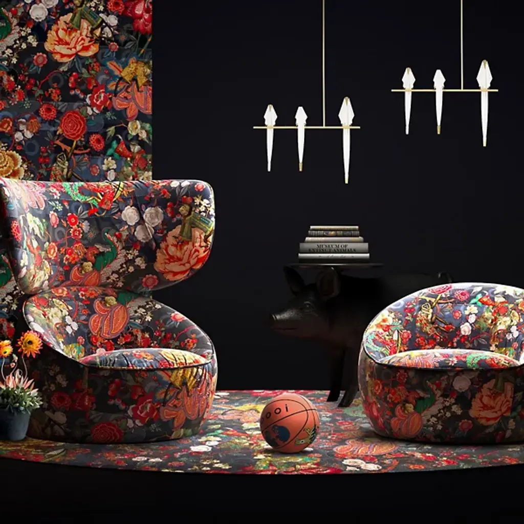 Introducing the Rendezvous Tokyo Blue Round Area Rug by Moooi Carpets - a luxurious and stunning piece that brings together the art of the Orient and the texture of denim. This rich velvet rug showcases a lush Japanese forest, teeming with life and movement, and is inspired by the traditional art of the region.