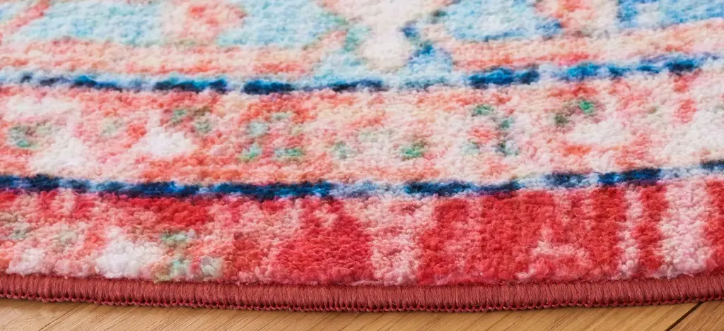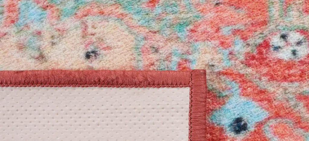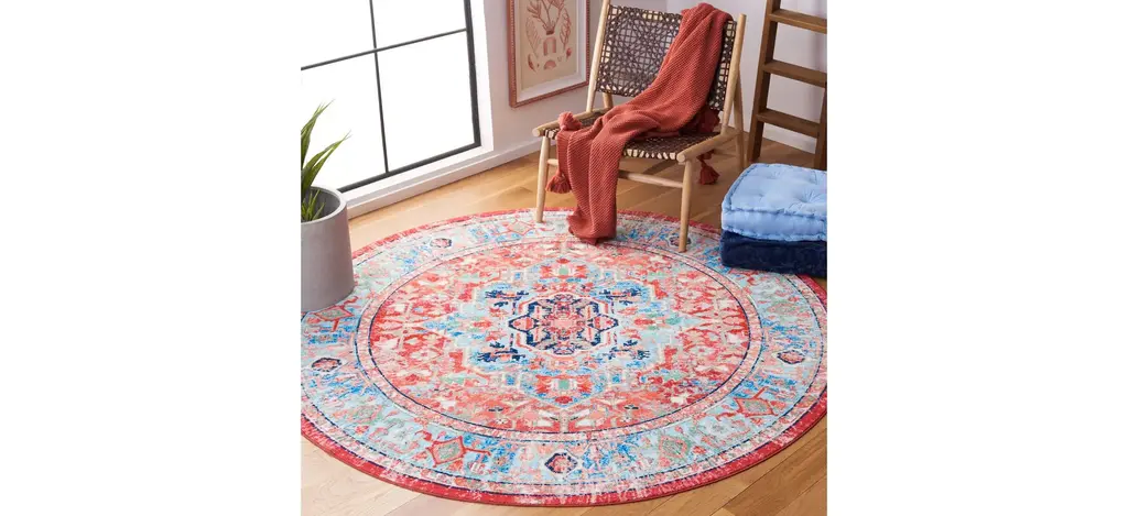 Antique rug artistry is reimagined in the brilliant hues, striking design, and any-room high performance of the Resba Round Area Rug. This trendy, transitional rug is machine washable, bringing high-style elegance to even the most well-traveled areas of the home. It is made using soft synthetic yarns with a foam latex backing for a comforting feel underfoot and long lasting charm.