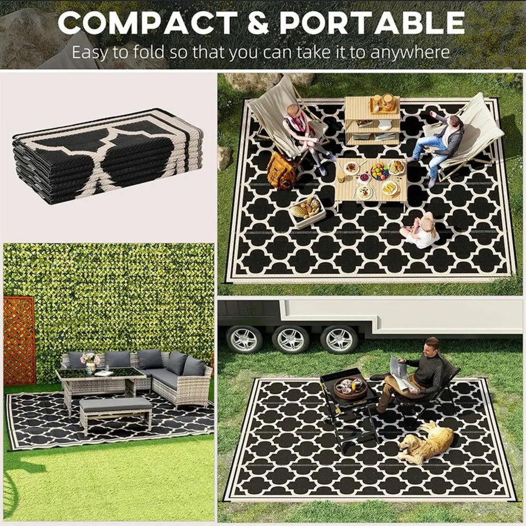Resenkos Floor Mat Carpet,Indoor Door Mat,9'x 12' Modern Outdoor Rug, Reversible and Folding Rug, with Four Straps, Black