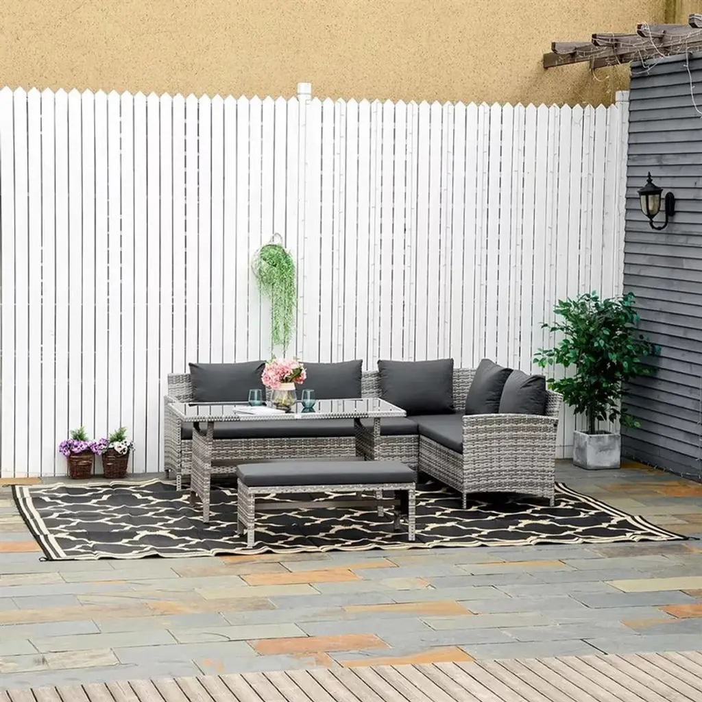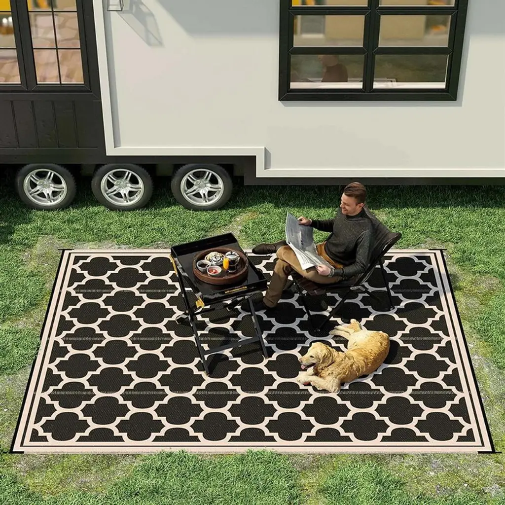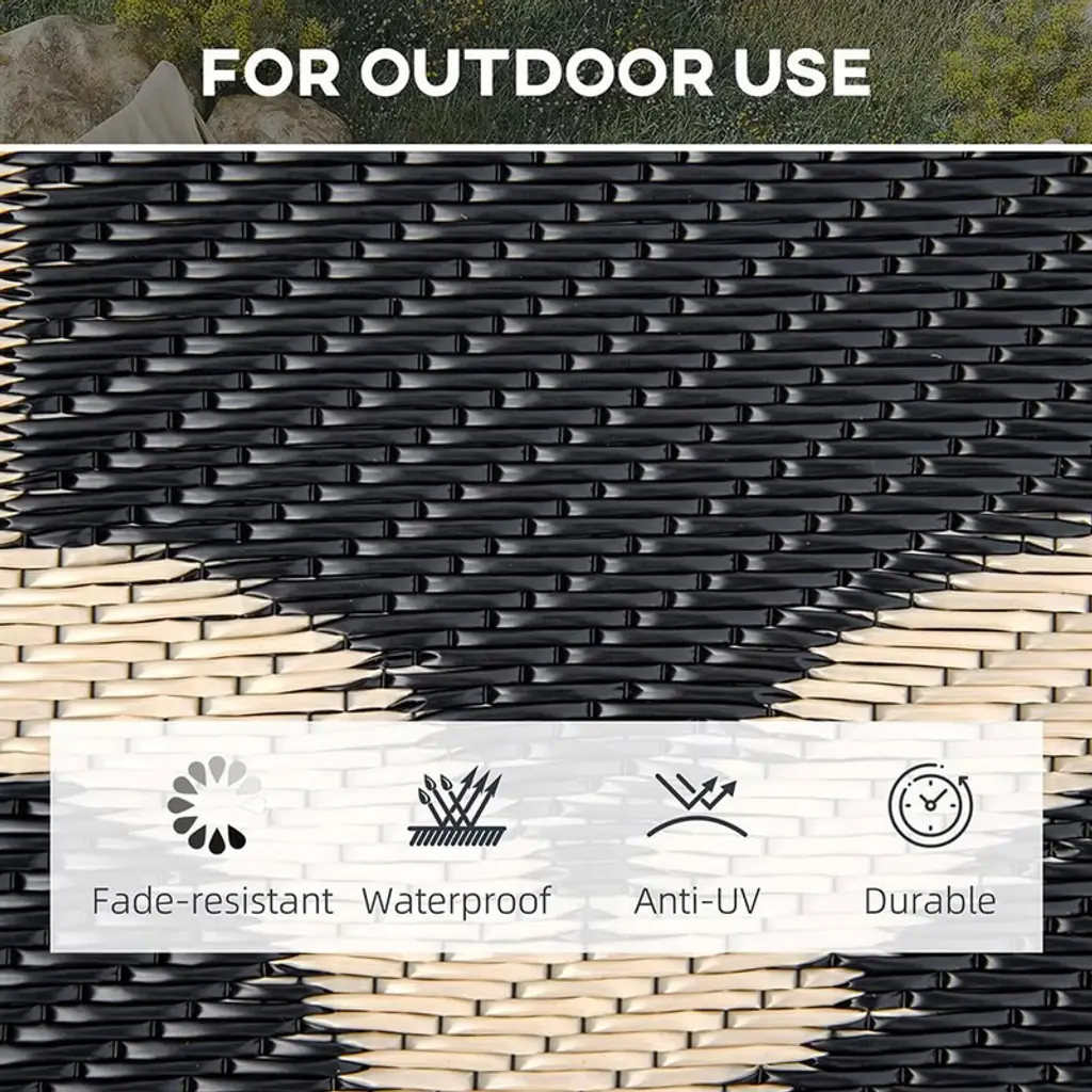 Resenkos Floor Mat Carpet,indoor Door Mat,9'x 12' Modern Outdoor Rug, Reversible And Folding Rug, With Four Straps, Black 143" Black