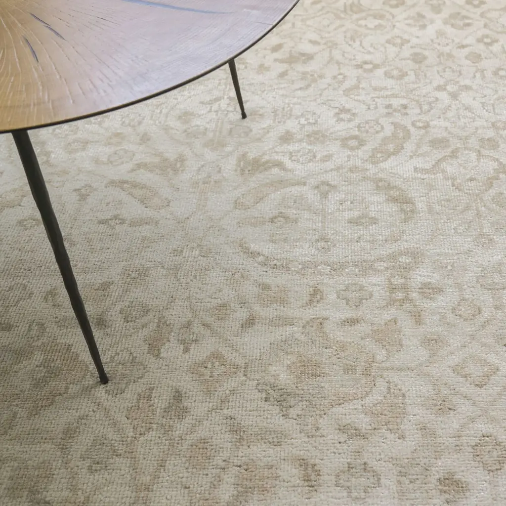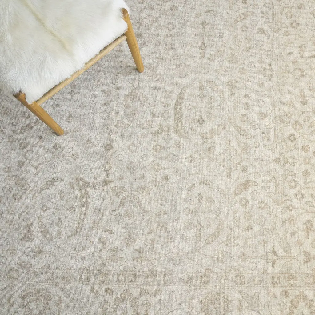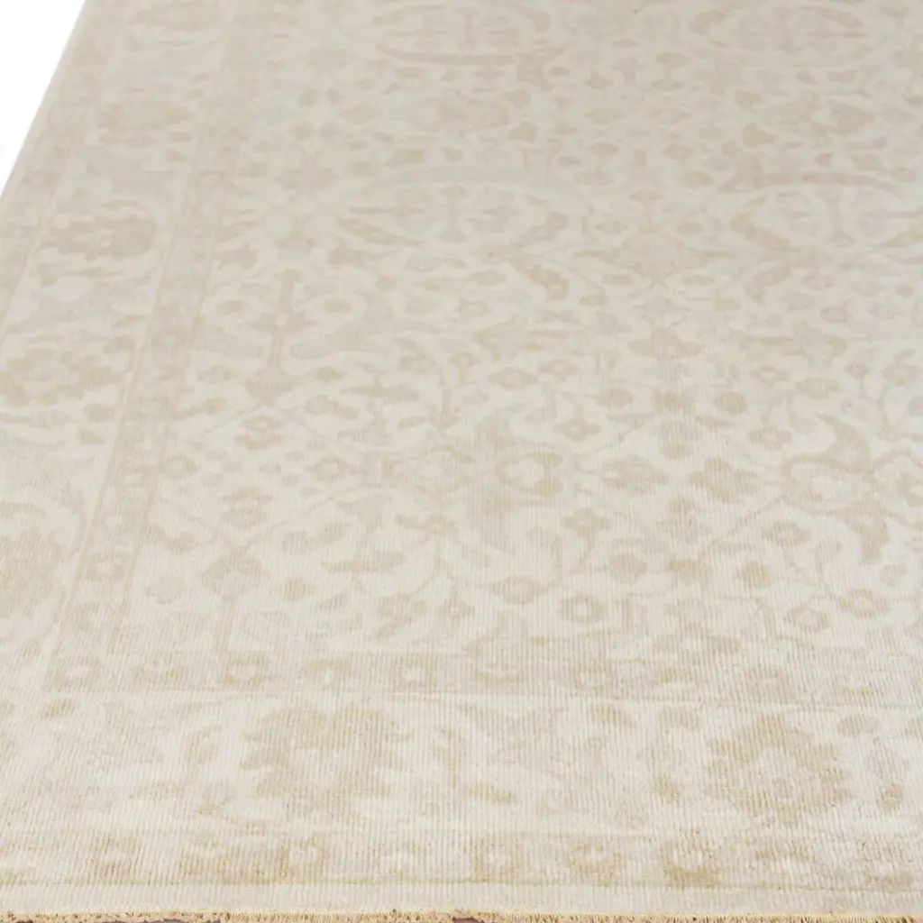 This rug's time-honored motifs are rendered in soft hues that will complement a wide range of palettes. Hand-knotted of New Zealand wool, prized for its softness and durability, the rug will maintain its beauty for years, if not generations. A rug pad is recommended to help prevent slipping.