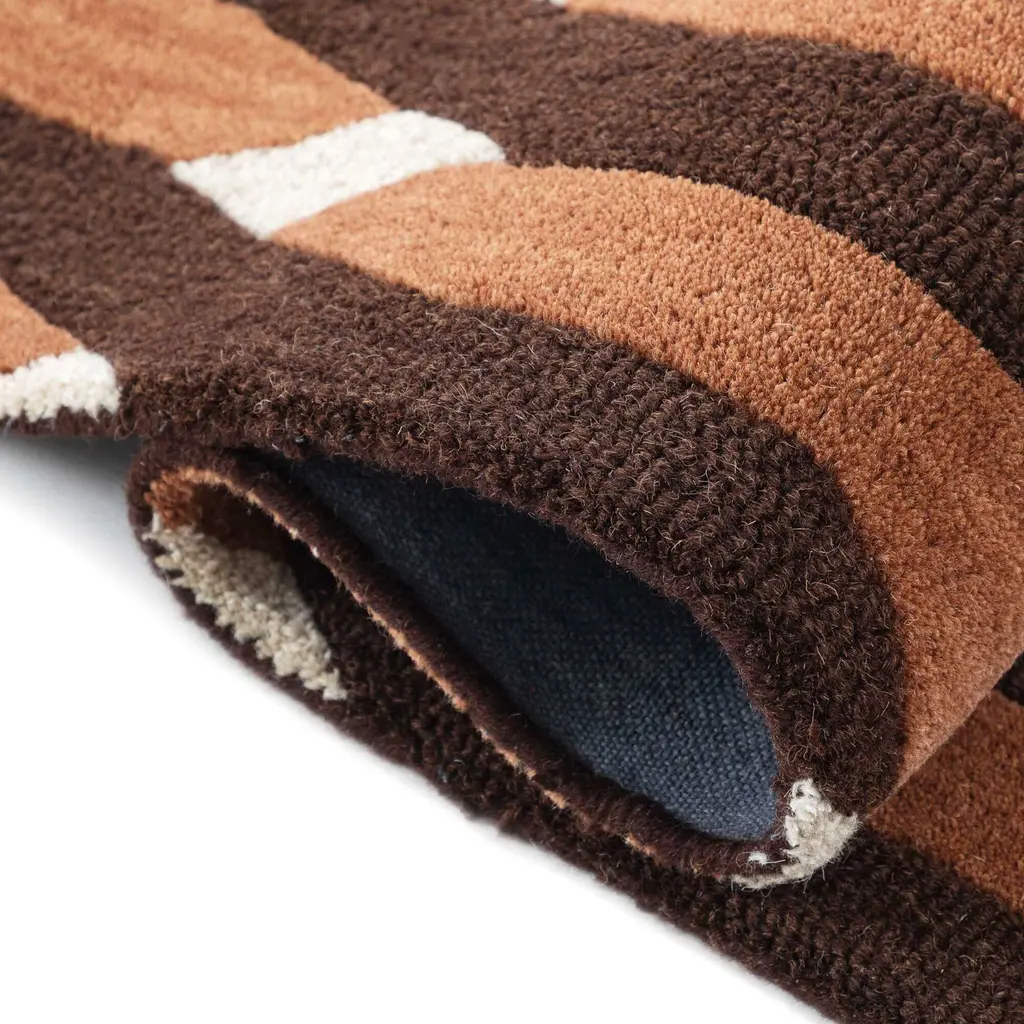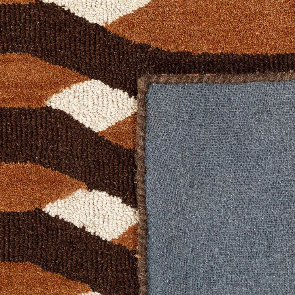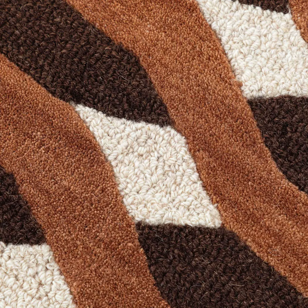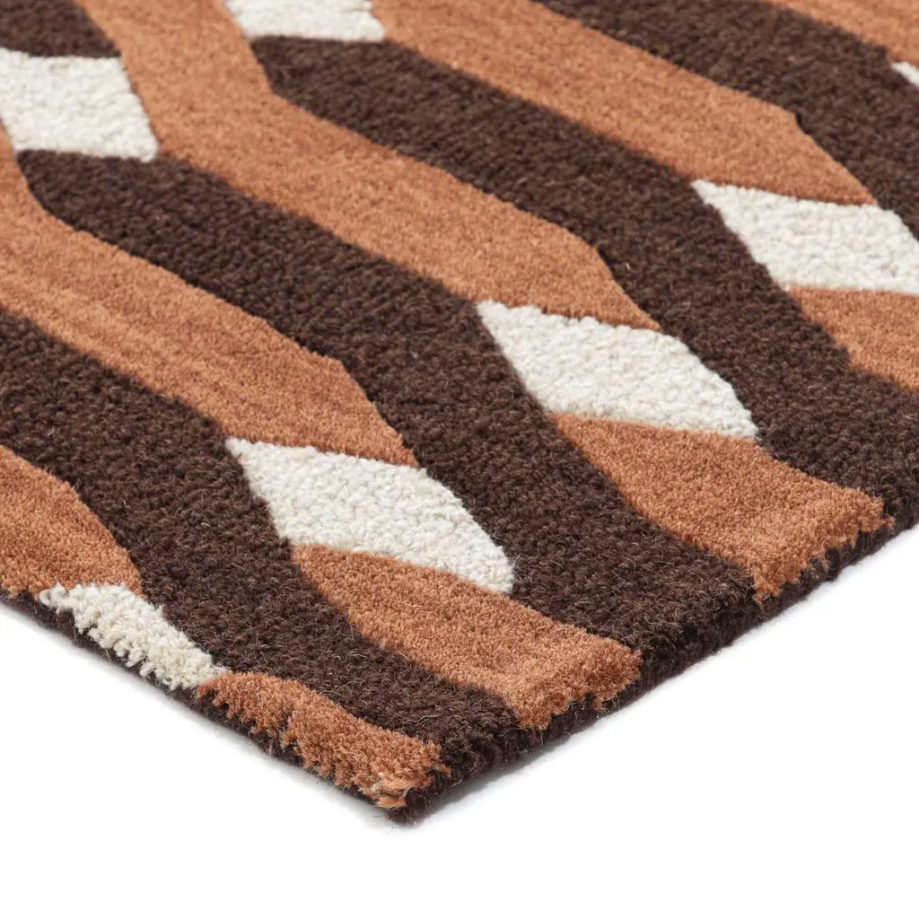 Hand tufted of plush wool with a touch of silky viscose, the Retro Allure area rug lives up to its name with a wavy lattice pattern in brown, black, and white. An homage to the psychedelic sensibility of '70s decor, this retro statement piece presents the trippy visual appeal of its geometric stripes in an approachable neutral palette. This plush artisan rug has the versatility to complement any decor and the boldness to stand out in every room.