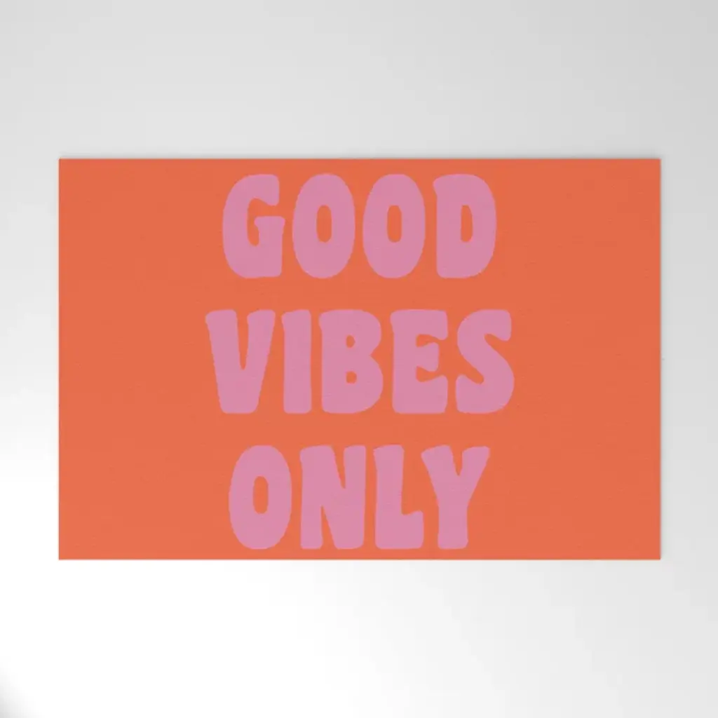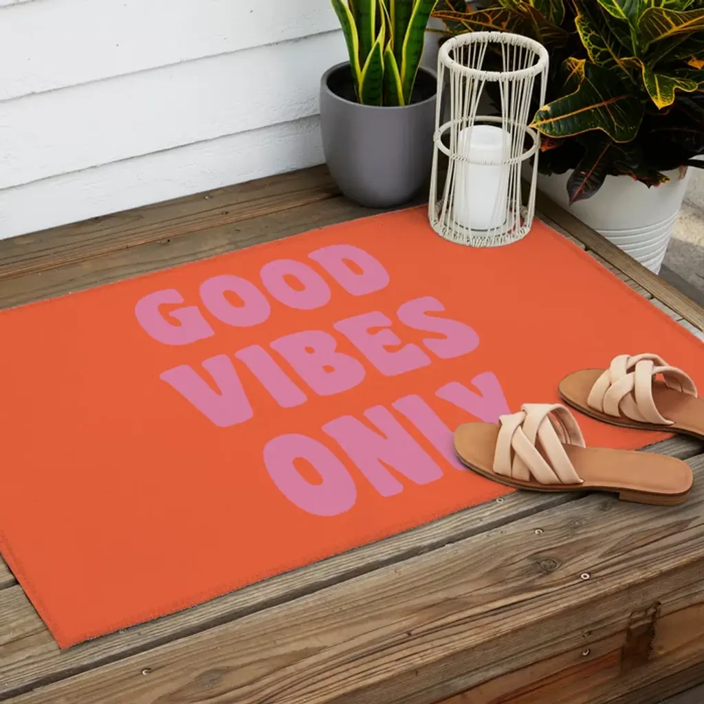 Retro Good Vibes Only Lettering In Pink And Orange Outdoor Rug