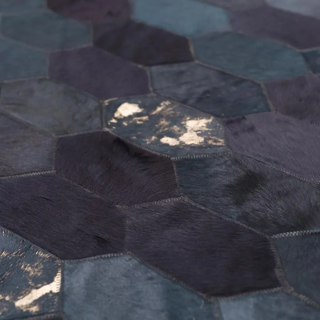 The retro, science fiction inspired Hornet features bold pops of vibrant color with luxe gold detailing.Playful yet evocative, the Hornet takes its cues from the rich colors of the desert and fun poolside style.Art Hide cowhide rugs are stitched together using commercial grade nylon thread and feature a branded ribbon edge finish. They are built to last a lifetime.This rug can easily be customized to any color, size or shape. This gorgeous rug is well suited to living areas and bedrooms alike and can be saturated with more color and gold or colors can be changed out.Art Hide rugs are usually made to order. Please allow approximately 4 weeks for delivery.
