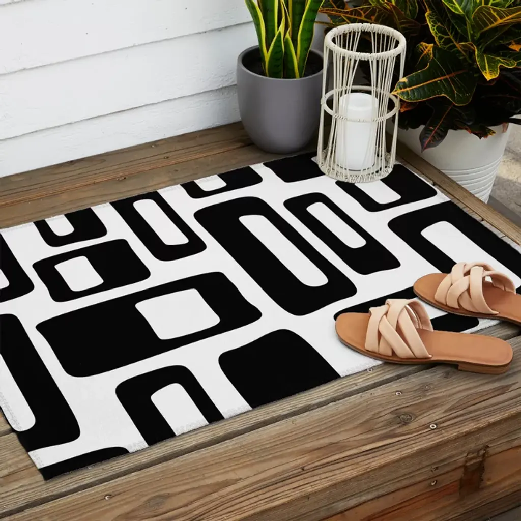 Retro Mid Century Modern Abstract Pattern 336 Black And White Outdoor Rug