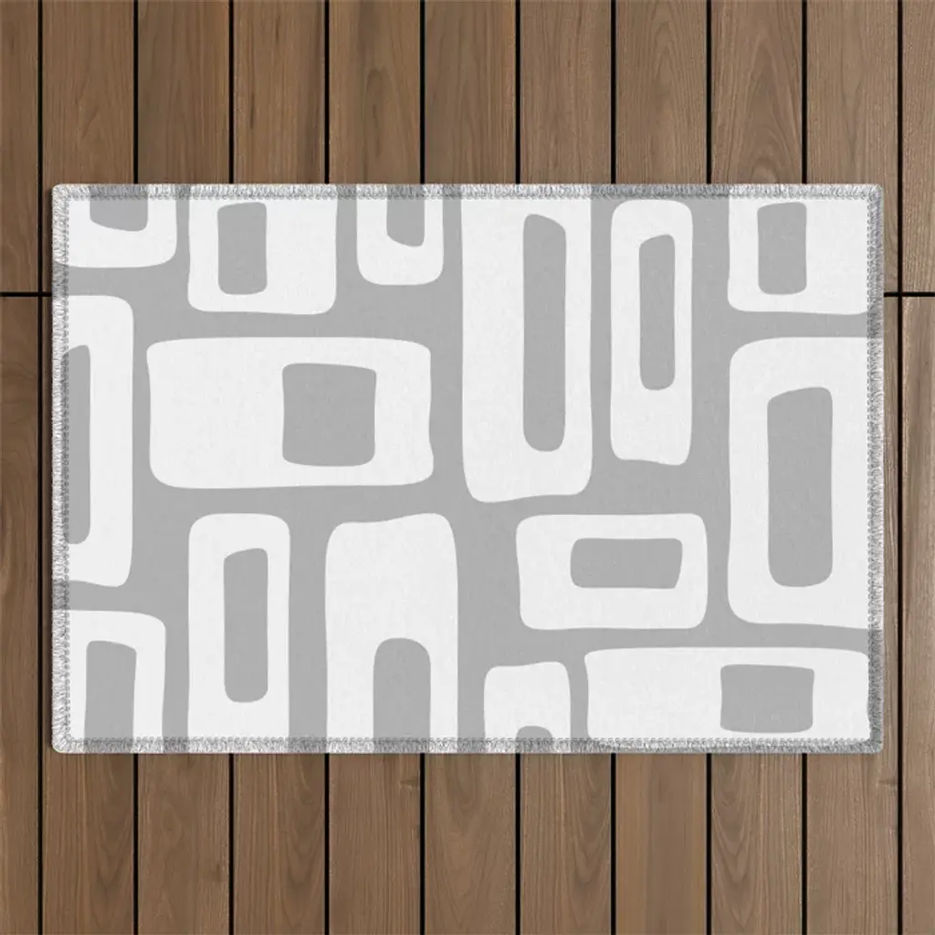 Retro Mid Century Modern Abstract Pattern 336 Gray Outdoor Rug