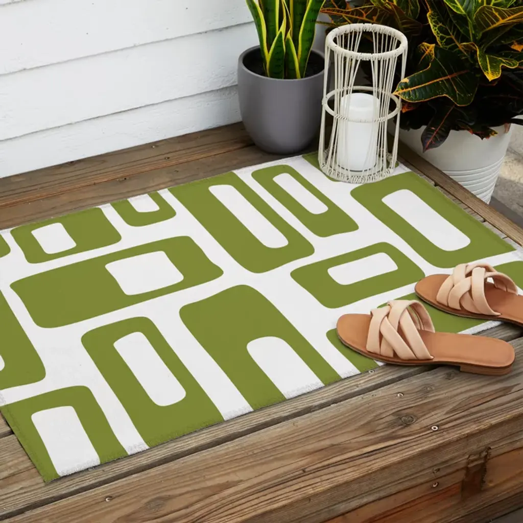 Retro Mid Century Modern Abstract Pattern 336 Olive Green Outdoor Rug